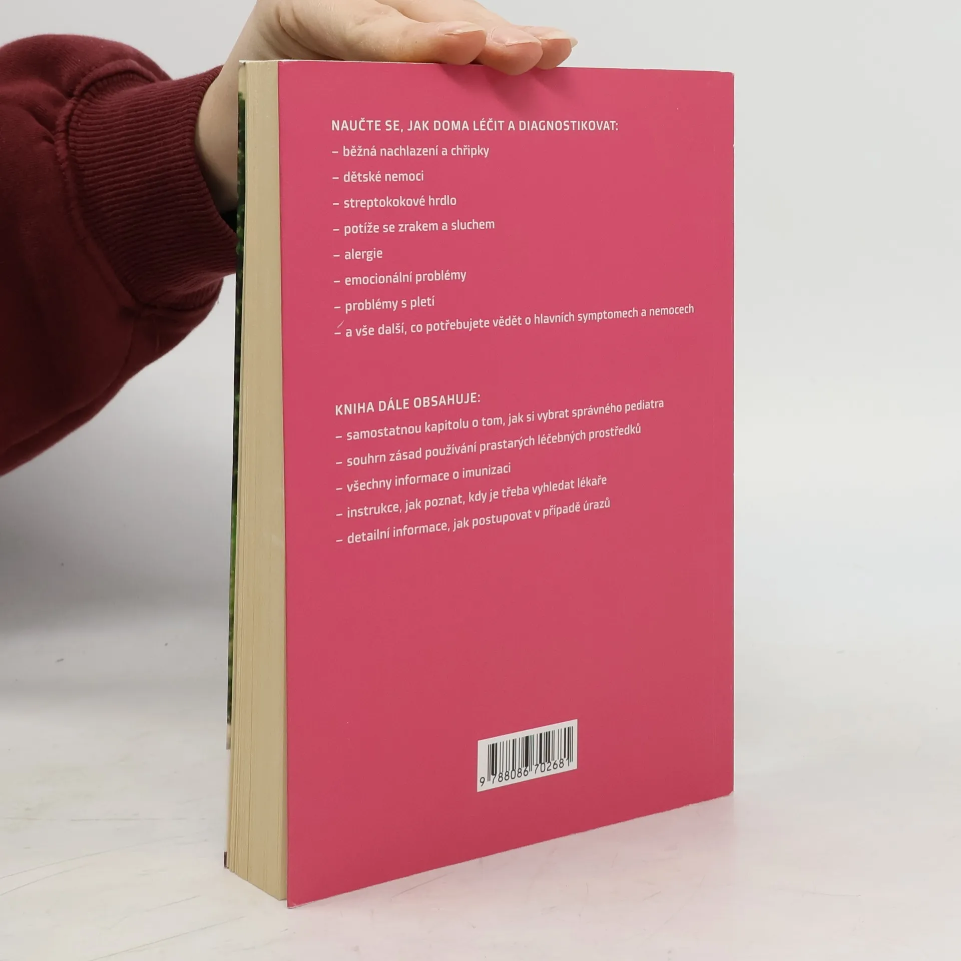 Naučte se, jak /doma/ léčit a diagnostikovat: běžná nachlazení a chřipky, dětské nemoci, alergie apod. Kniha dále obsahuje kapitolu o tom, jak si vybrat správného pediatra, souhrn zásad používání prastarých léčebných prostředků, instrukce, jak poznat, kdy je třeba vyhledat lékaře a detailní informace, jak postupovat v případě úrazů.