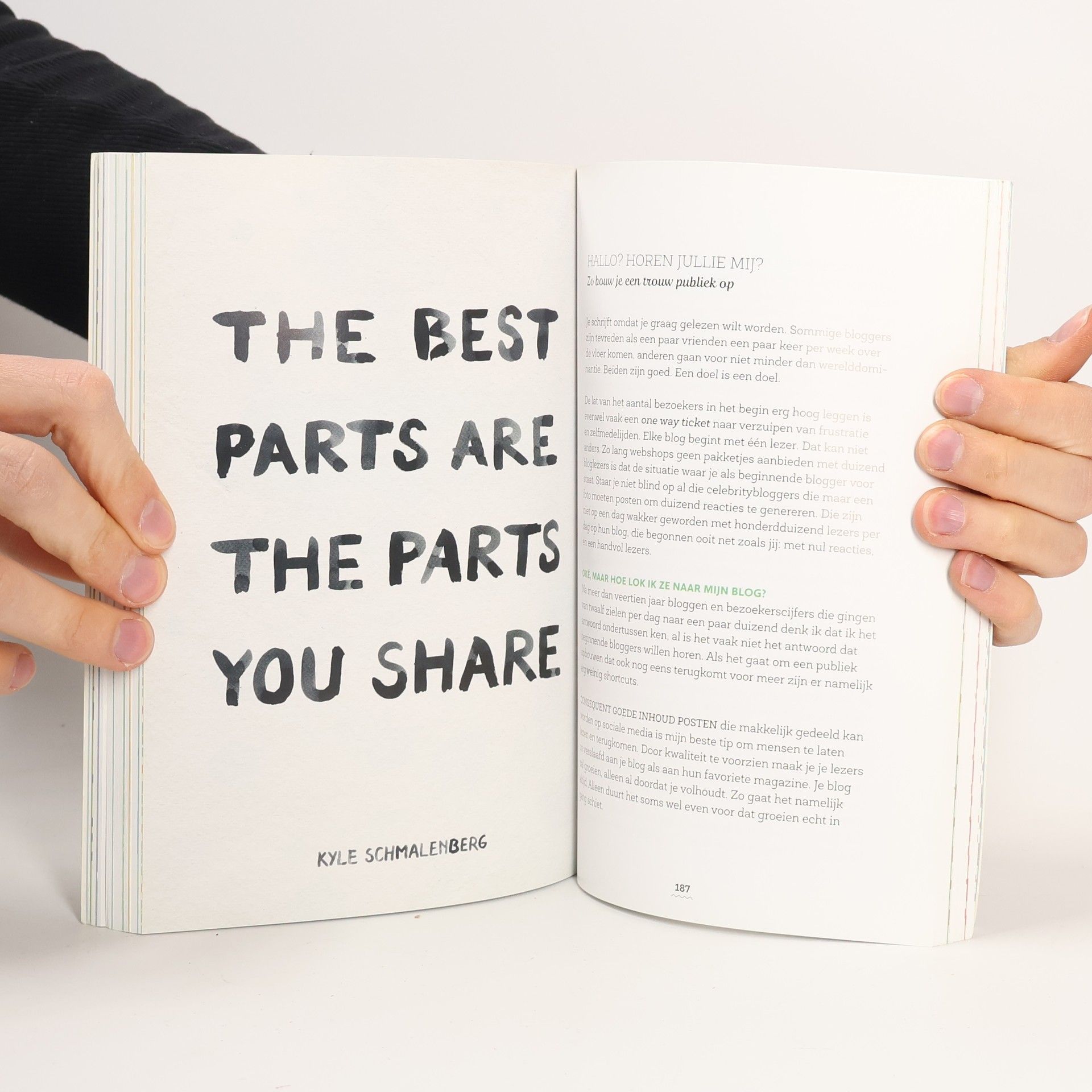 Velen voelen zich geroepen om een blog te beginnen, weinigen houden het langer dan enkele maanden vol. Of je nu plannen hebt om jouw droomblog uit de grond te stampen of vindt dat jouw bloggoesting een serieuze boost kan gebruiken: het blogboek bundelt alle kennis die longtime blogster Kelly Deriemaeker de afgelopen tien jaar verzamelde, en laat je achter met een hoop inspiratie, tips en tricks van andere succesvolle bloggers, frisse ideeën en vooral veel goesting om zelf aan de slag te gaan.