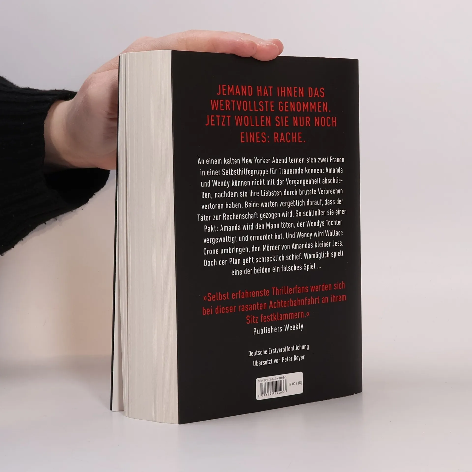 »Selbst erfahrenste Thrillerfans werden sich bei dieser rasanten Achterbahnfahrt an ihrem Sitz festklammern.« Publishers Weekly An einem kalten New Yorker Abend lernen sich zwei Frauen in einer Selbsthilfegruppe für Trauernde kennen: Amanda und Wendy können nicht mit der Vergangenheit abschließen, nachdem sie ihre Liebsten durch brutale Verbrechen verloren haben. Beide warten vergeblich darauf, dass der Täter zur Rechenschaft gezogen wird. So schließen sie einen Pakt: Amanda wird den Mann töten, der Wendys Tochter vergewaltigt und ermordet hat. Und Wendy wird Wallace Crone umbringen, den Mörder von Amandas kleiner Jess. Doch der Plan geht schrecklich schief. Denn eine der beiden spielt ein falsches Spiel …