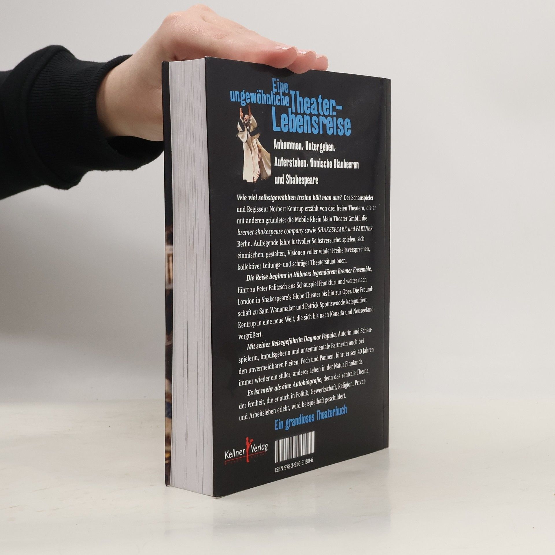Eine ungewöhnliche Theater-Lebensreise Ankommen, Untergehen, Auferstehen, finnische Blaubeeren und Shakespeare Wie viel selbst gewählten Irrsinn hält man aus? Der Schauspieler und Regisseur Norbert Kentrup erzählt von drei freien Theatern, die er mit anderen erwünschte, erlitt und erlebte: die Mobile Rhein Main Theater GmbH, die bremer shakespeare company sowie SHAKESPEARE und PARTNER Berlin. Aufregende Jahre lustvoller Selbstversuche: spielen, sich einmischen, gestalten, Visionen voller vitaler Freiheitsversprechen, kollektiver Leitungs- und schräger Theatersituationen. Die Reise beginnt in Hübners legendärem Bremer Ensemble, führt zu Peter Palitzsch ans Schauspiel Frankfurt und weiter nach London in Shakespeare’s Globe Theater bis hin zur Oper. Die Freundschaft zu Sam Wanamaker und Patrick Spottiswoode katapultiert Kentrup in eine neue Welt, die sich bis nach Kanada und Neuseeland vergrößert. Mit seiner Reisegefährtin Dagmar Papula, Autorin und Schauspielerin, Impulsgeberin und unsentimentale Partnerin, auch bei den unvermeidbaren Pleiten, Pech und Pannen führt er seit 40 Jahren immer wieder ein stilles, anderes Leben in der Natur Finnlands. Es ist mehr als eine Autobiografie, denn das zentrale Thema der Freiheit, die er in Politik, Gewerkschaft, Kirche, Privat- und Arbeitsleben ausprobiert, wird beispielhaft und persönlich geschildert. Ungeschminkte Einblicke in und hinter verschiedenste Kulissen. Ein grandioses Theaterbuch