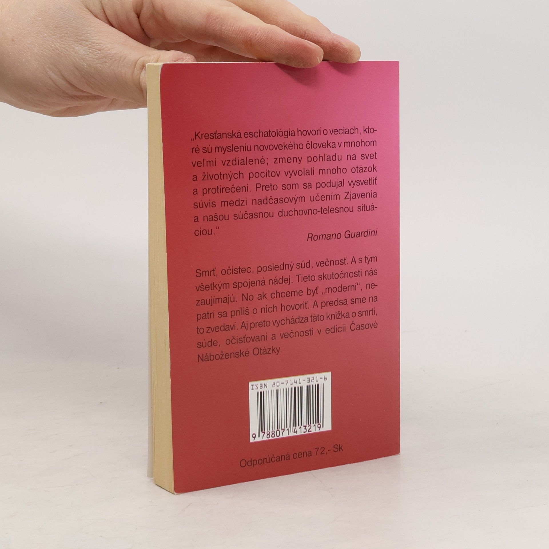 Smrť, očistec, posledný súd, večnosť. A s tým všetkým spojená nádej. Tieto skutočnosti nás zaujímajú. No ak chceme byť „moderní“, nepatrí sa príliš o nich hovoriť. A predsa sme na to zvedaví. Aj preto vyšla táto knižka o smrti, súde, očisťovaní a večnosti v edícii Časové náboženské otázky. Vydanie prvé
