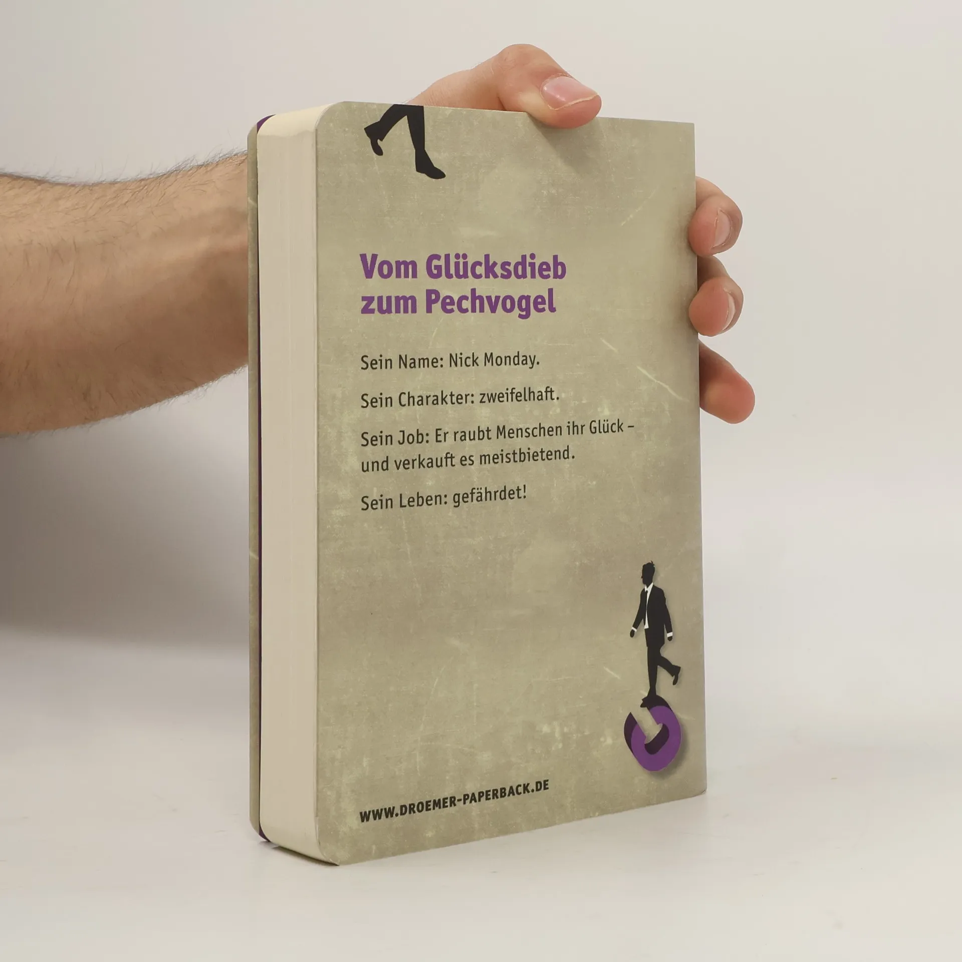Sein Name: Nick Monday. Sein Charakter: zweifelhaft. Sein Job: Er raubt Menschen ihr Glück – und verkauft es meistbietend. Als Nick den Auftrag bekommt, das verlorene Glück eines Politikers zu finden, scheint dies ein Kinderspiel zu werden. Doch dann wird er innerhalb weniger Stunden gleich mehrmals entführt und erpresst. Nick beginnt zu ahnen, dass er am Ende dieses Höllentages ein echter Pechvogel sein könnte …