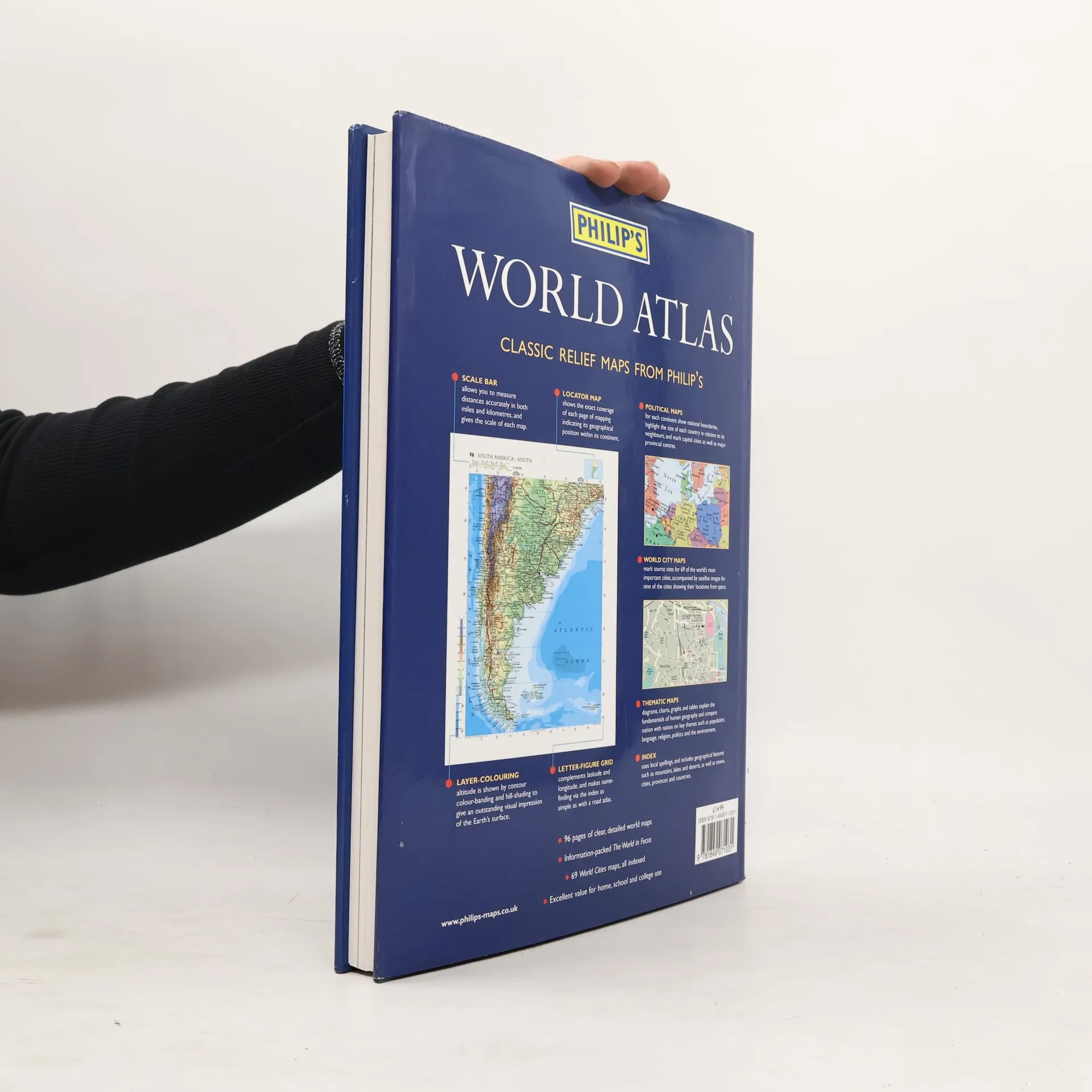 With 96 pages of authoritative world maps, a comprehensive index, 69 city maps, and a thematic section providing information on topics covered in geography, humanities and economics courses, Philip's World Atlas is recommended for students as well as for general home reference. The 96 pages of physical and political maps give a balanced coverage of the world at well-chosen scales. The hill-shading on the physical maps provides an exceptionally vivid portrayal of landforms. The 32-page introductory section - 'The World in Focus' - covers key geographical themes such as the Earth's position in the Solar System, the structure of the Earth, climate and weather, the environment, population, resources, economics and international organizations. The 48-page 'World Cities' section provides urban-area and city-centre maps marking tourist sites for 69 of the world's most important cities, backed up by a comprehensive index. Full-page satellite images for 9 of the cities featured complete this section. The 35,000-name index includes geographical features as well as towns and cities, with both letter-figure grid references and latitude and longitude co-ordinates.