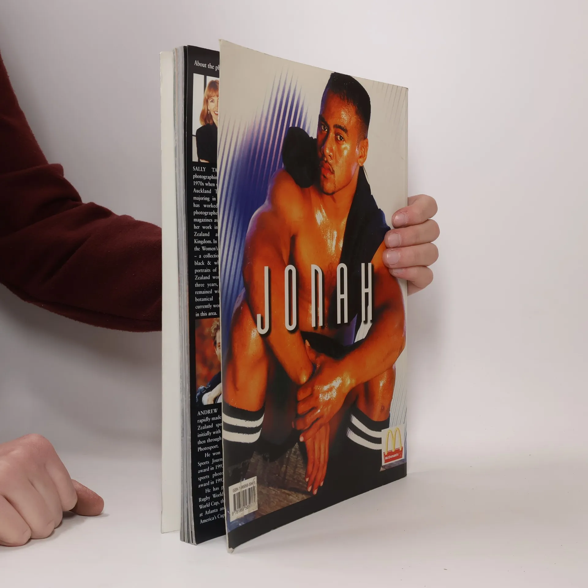 Colour photos of New Zealand All Blacks player Jonah Lomu. Accompanied by quotations.