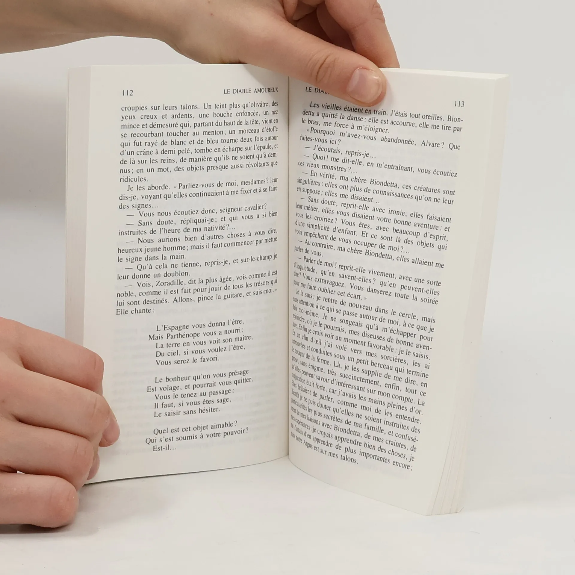Le démon se rend souvent hideux à plaisir. C'est d'abord cette image qu'il donne à don Alvare lorsque celui-ci l'évoque dans les ruines du palais de Portici sous le nom de Béelzébuth. Une tête de chameau hurlant de sa grande gueule : "Que ceux-tu ? " Mais Alvare a de l'audace et, vite maître de sa terreur, il réduit le spectre à l'état d'esclave et en use comme Aladin de son génie. Sous les traits d'une sylphide, la créature qui va désormais le servir n'a plus rien de diabolique hormis sa séduction et ses ruses. Biondetta ! Comment rêver femme plus désirable ? A la fois innocente et perverse. Tourmentée et abandonnée. Imposture ou magie, cette aventure qui se déroule en plein carnaval de Venise présente toutes les facettes d'un divertissement amoureux...