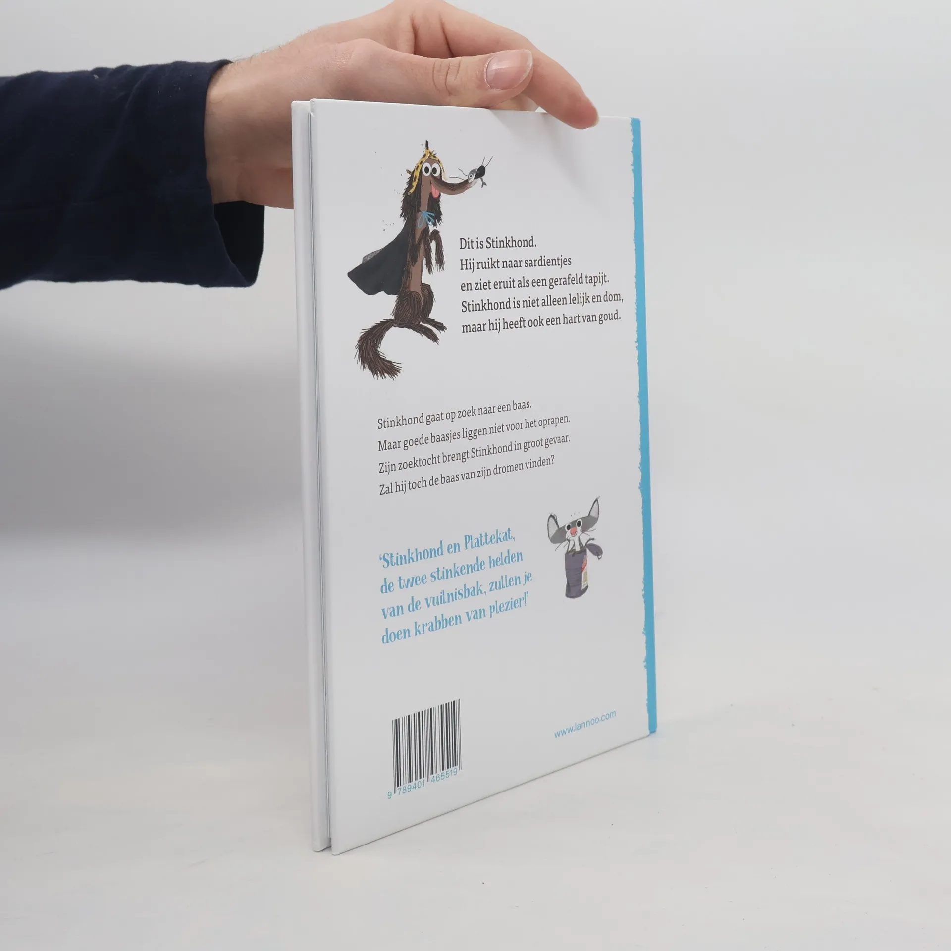 Dit is Stinkhond. Hij ruikt naar sardientjes en ziet eruit als een gerafeld tapijt. Stinkhond is niet alleen lelijk en dom, maar hij heeft ook een hart van goud. Stinkhond gaat op zoek naar een baas. Maar goede baasjes liggen niet voor het oprapen. Zijn zoektocht brengt Stinkhond in groot gevaar. Zal hij toch de baas van zijn dromen vinden?