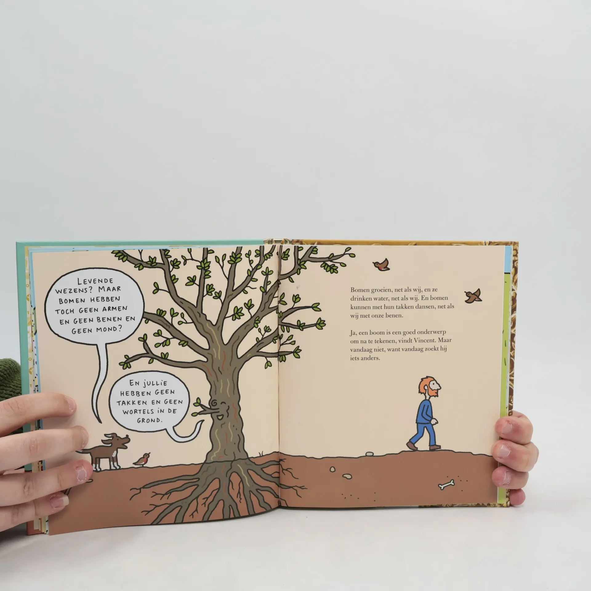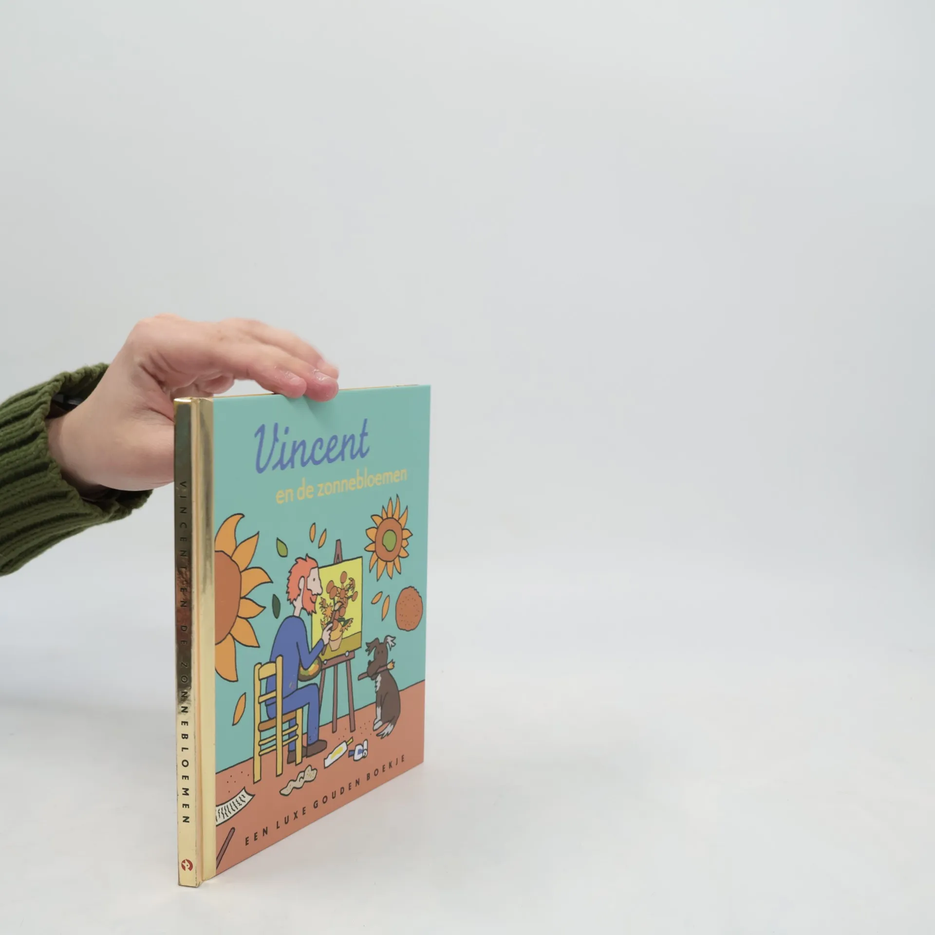 Vincent van Gogh gaat op pad om een nieuw onderwerp voor zijn schilderij te vinden. Hij bewondert vogelnesten, grassprieten en bomen, totdat hij zonnebloemen ziet! Prentenboekje met stripachtige kleurenillustraties. Vanaf ca. 5 jaar.