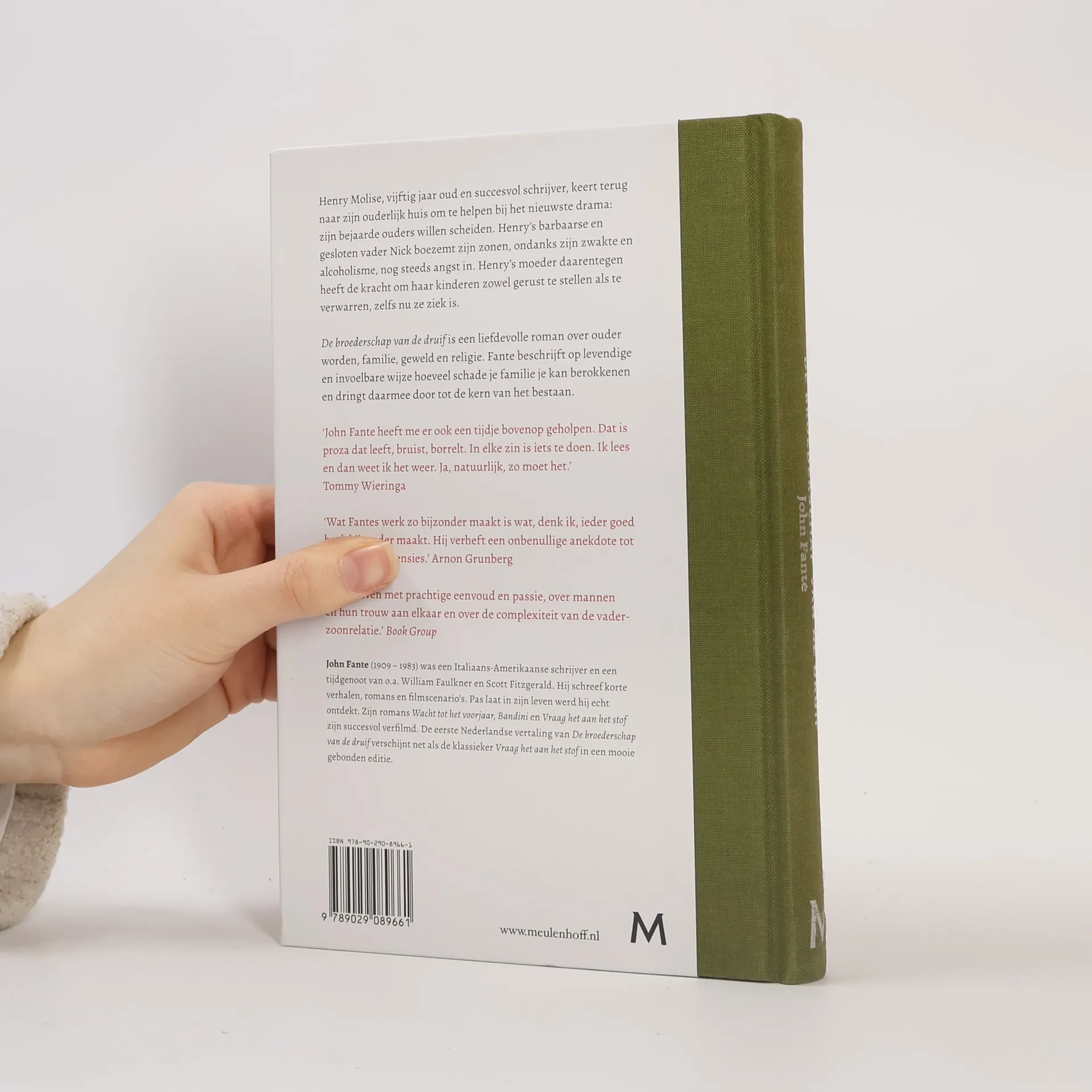 Henry Molise, vijftig jaar oud en succesvol schrijver, keert terug naar zijn ouderlijk huis om te helpen bij het nieuwste drama: zijn bejaarde ouders willen scheiden. Henry's barbaarse en gesloten vader Nick boezemt zijn zonen, ondanks zijn zwakte en alcoholisme, nog steeds angst in. Henry's moeder daarentegen heeft de kracht om haar kinderen zowel gerust te stellen als te verwarren, zelfs nu ze ziek is. <em>De broederschap van de druif</em> is een liefdevolle roman over ouder worden, familie, geweld en religie. Fante beschrijft op levendige en invoelbare wijze hoeveel schade je familie je kan berokkenen en dringt daarmee door tot de kern van het bestaan.
