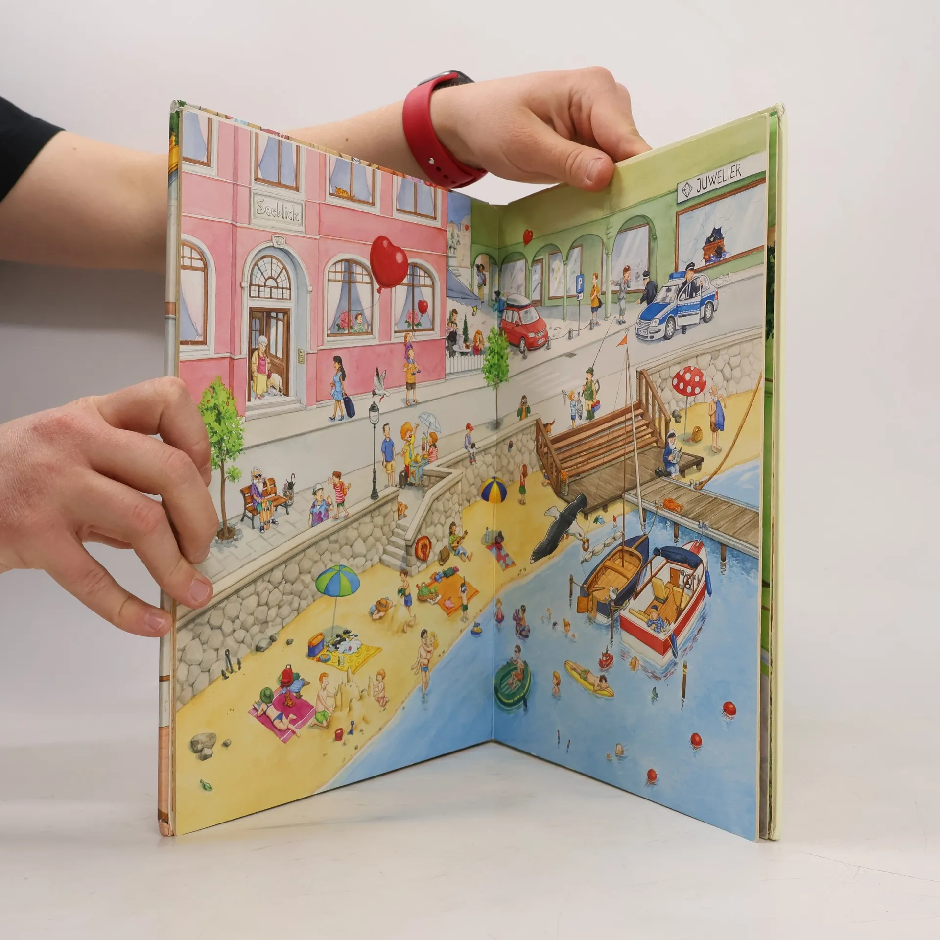 Alle unterwegs: das große WimmelbilderbuchAuf in die Ferien! Mit Max und Lara gehen kleine Entdecker auf große Reise: Raus aus der Stadt auf die Autobahn und ans Meer, durch das Dorf mit der großen Kirmes und über Land bis zum Ferienparadies auf dem Bauernhof. Aber hoppla, da sind ja nicht nur Max und Lara unterwegs!Auf herrlich großen und meisterhaft verspielten Wimmelbildern erzählt Oliver Regener diese eine und gleich noch 101 andere Geschichten vom Verreisen! Der herrenlose Luftballon, die Plüschäffchen für die Kirmes, das verliebte Brautpaar – alle sind unterwegs und alle begegnen einander. Da nimmt das große Gucken, Staunen, Finden, Entdecken und Erzählen kein Ende mehr!• Das riesengroße Bilderbuch vergnügen voller Überraschungen• Der grandiose Entdeckerspaß für die Kleinen ab 4• Mit echter Buchdecke und griffigen Pappseiten extra für Kinderhände