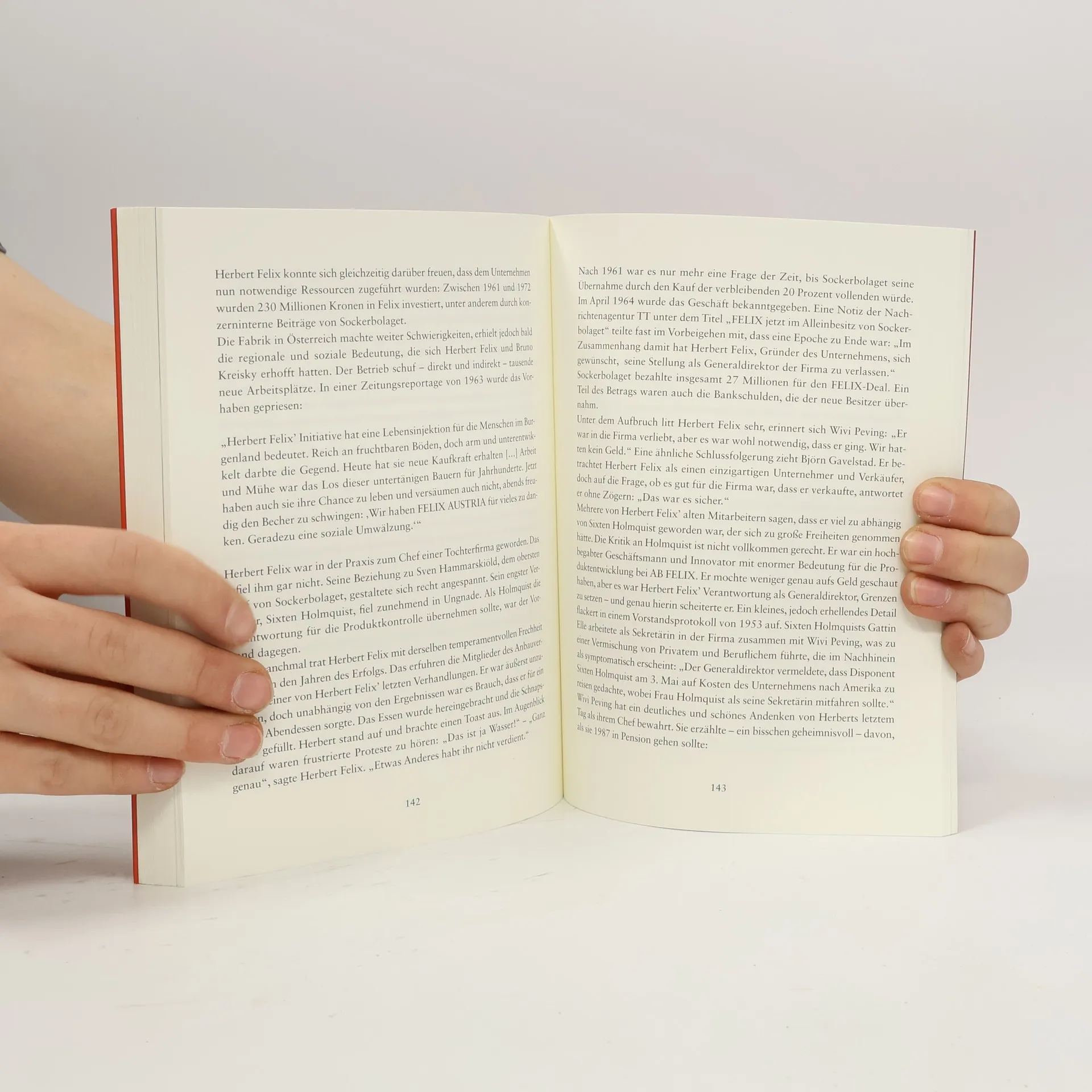 Hinter der bekannten Marke Felix steckt ein bewegtes und faszinierendes Leben, in dem sich Europas dramatisches 20. Jahrhundert widerspiegelt. Herbert Felix war jüdischer Herkunft und musste 1938 vor den Nationalsozialisten von der Tschechoslowakei nach Schweden fliehen. Mitgenommen hat er das Wissen seiner Familie über das Einlegen von Gurken. Er war damit erfolgreich und entwickelte neue Produkte, wie Ketchup in Plastikflaschen. Im Zweiten Weltkrieg kämpfte Herbert Felix als Freiwilliger bei den Alliierten. Er konnte aber nicht verhindern, dass seine Familie in den Konzentrationslagern ermordet wurde. Der engste Verwandte, der den Holocaust überlebt hatte, war sein Cousin Bruno Kreisky. Durch dessen Vermittlung gründete er im Burgenland FELIX Austria. Die deutschsprachige Erstausgabe der in Schweden erschienenen Biographie Konservkungen: Herbert Felix – ett flyktingöde i 1900-talets von Per T Ohlsson bietet einen spannenden Einblick in das Lebender mährisch-österreichisch-tschechischen Unternehmerfamilie, der durch Beiträge von Walter Reiss, Eduard Sieber, Gertrude Andersson-Reisner und Gulliver Wagner vertieft wird.