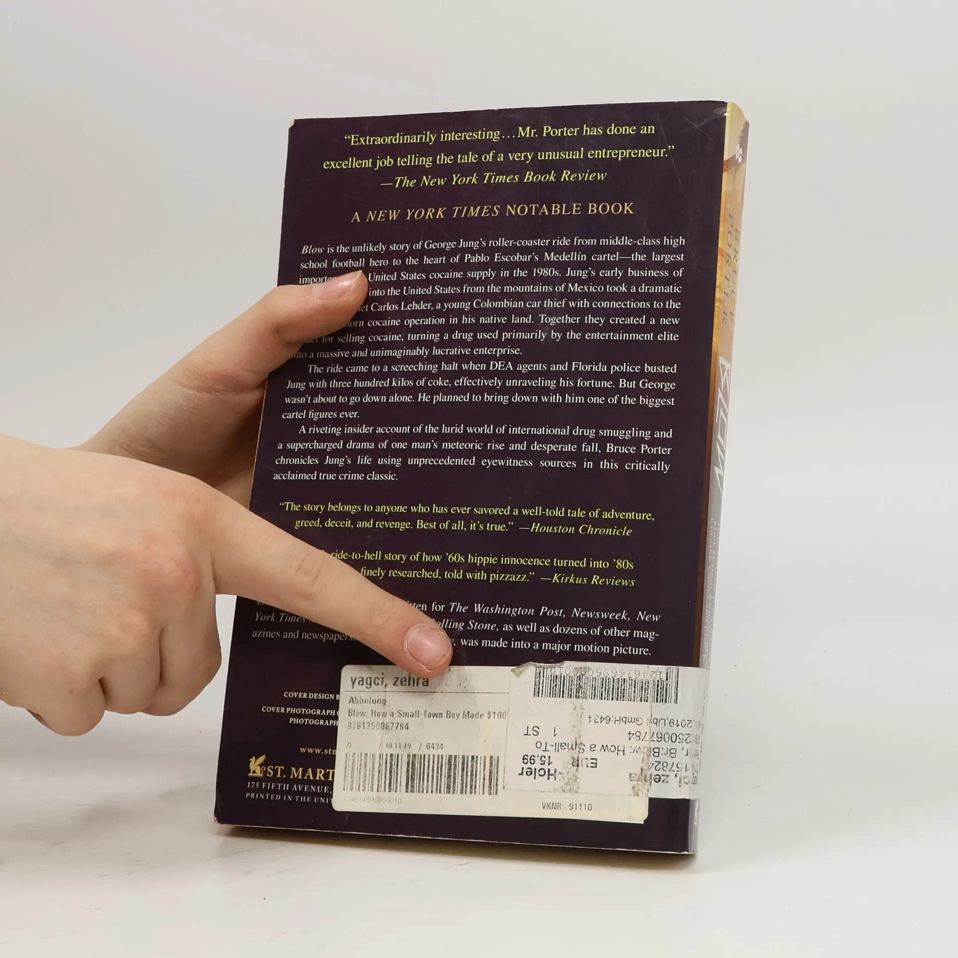 BLOW is the unlikely story of George Jung's roller coaster ride from middle-class high school football hero to the heart of Pable Escobar's Medellin cartel-- the largest importer of the United States cocaine supply in the 1980s. Jung's early business of flying marijuana into the United States from the mountains of Mexico took a dramatic turn when he met Carlos Lehder, a young Colombian car thief with connections to the then newly born cocaine operation in his native land. Together they created a new model for selling cocaine, turning a drug used primarily by the entertainment elite into a massive and unimaginably lucrative enterprise-- one whose earnings, if legal, would have ranked the cocaine business as the sixth largest private enterprise in the Fortune 500. The ride came to a screeching halt when DEA agents and Florida police busted Jung with three hundred kilos of coke, effectively unraveling his fortune. But George wasn't about to go down alone. He planned to bring down with him one of the biggest cartel figures ever caught. With a riveting insider account of the lurid world of international drug smuggling and a super-charged drama of one man's meteoric rise and desperate fall, Bruce Porter chronicles Jung's life using unprecedented eyewitness sources in this critically acclaimed true crime classic.