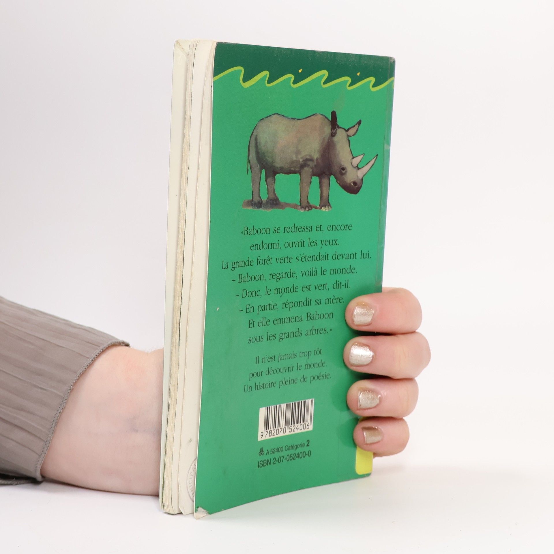 " Baboon se redressa et, encore endormi, ouvrit les yeux. La grande forêt verte s'étendait devant lui. - Baboon, regarde, voilà le monde. - Donc, le monde est vert, dit-il. - En partie, répondit sa mère. Et elle emmena Baboon sous les grands arbres. " Il n'est jamais trop tôt pour découvrir le monde. Une histoire pleine de poésie.