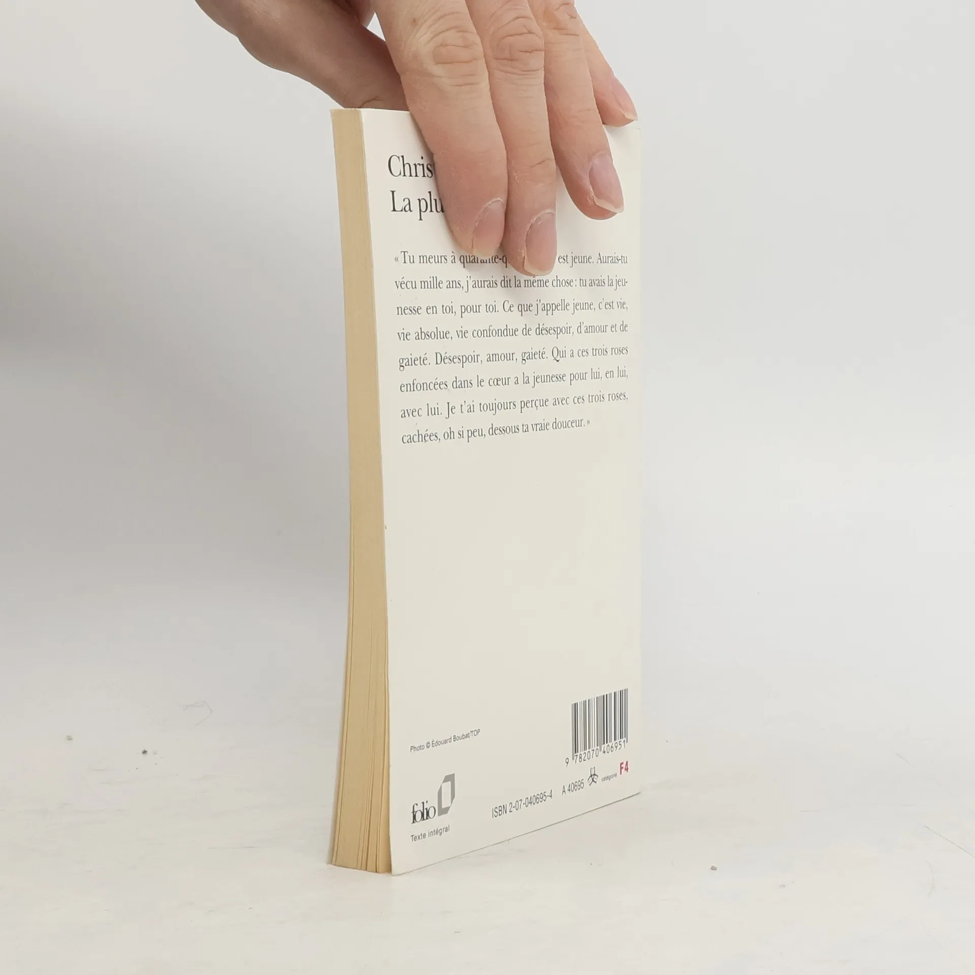"Tu meurs à quarante-quatre ans, c'est jeune. Aurais-tu vécu mille ans, j'aurais dit la même chose : tu avais la jeunesse en toi, pour toi. Ce que j'appelle jeune, c'est vie, vie absolue, vie confondue de désespoir, d'amour et de gaieté. Désespoir, amour, gaieté. Qui a ces trois roses enfoncées dans le coeur a la jeunesse pour lui, en lui, avec lui. Je t'ai toujours perçue avec ces trois roses, cachées, oh si peu, dessous ta vraie douceur."Christian Bobin.