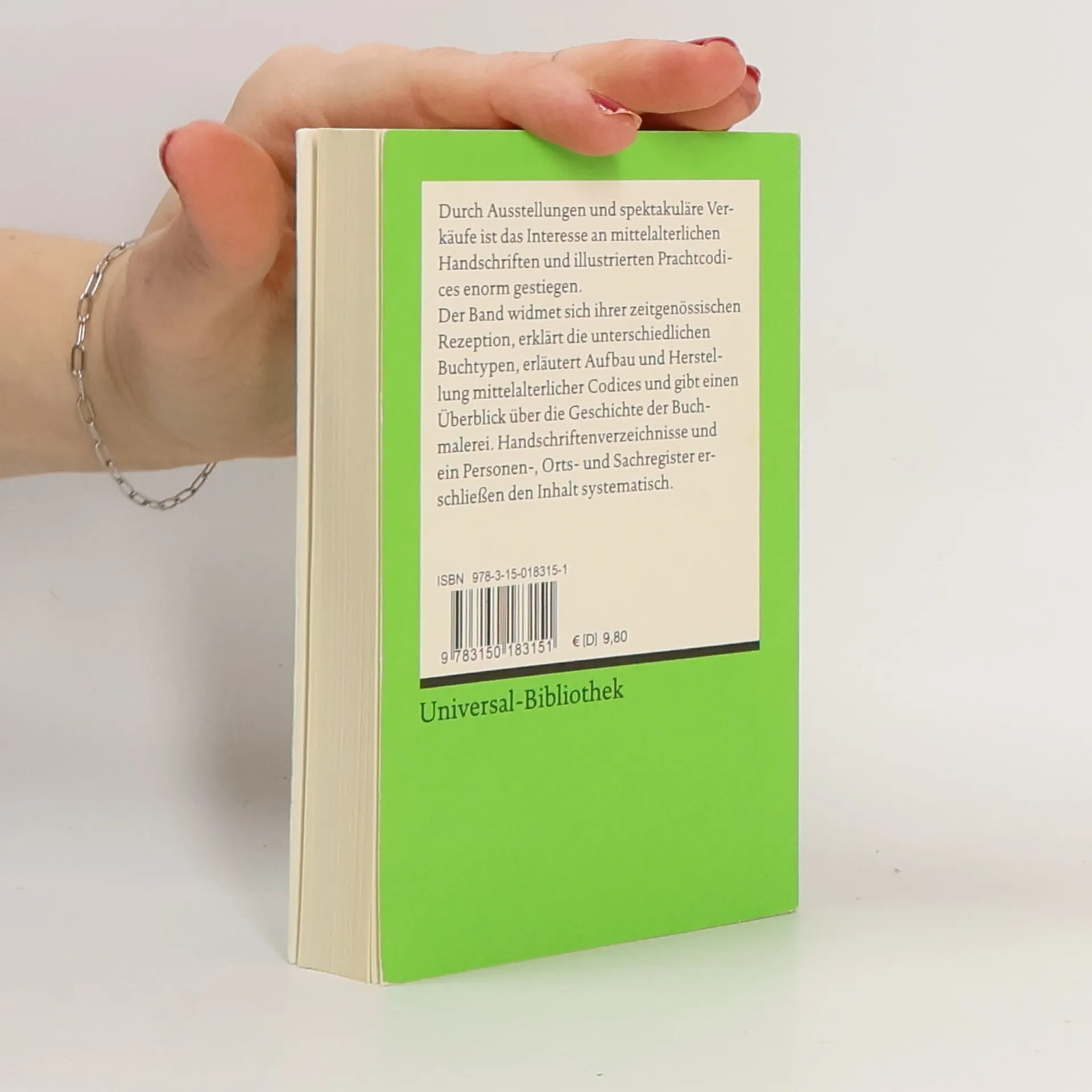 Christine Jakobi-Mirwald bietet einen umfassenden Einblick in die Buchproduktion vor Gutenberg, erklärt verschiedene Buchtypen, deren Funktionen, Herstellung und zeitgenössische Rezeption und beleuchtet die Geschichte der Buchmalerei.