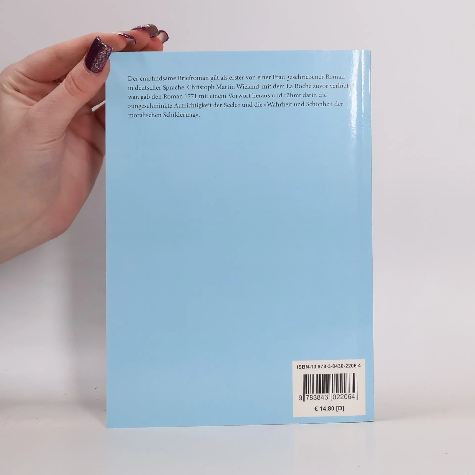 Sophie von La Roche: Geschichte des Frauleins von Sternheim Der empfindsame Briefroman gilt als erster von einer Frau geschriebener Roman in deutscher Sprache. Christoph Martin Wieland, mit dem La Roche zuvor verlobt war, gab den Roman 1771 mit einem Vorwort heraus und ruhmt darin die ungeschminkte Aufrichtigkeit der Seele und die Wahrheit und Schonheit der moralischen Schilderung. Erstdruck (anonym): Leipzig (Weidmanns Erben und Reich) 1771. Vollstandige Neuausgabe mit einer Biographie der Autorin. Herausgegeben von Karl-Maria Guth. Berlin 2015. Textgrundlage ist die Ausgabe: Sophie von La Roche: Geschichte des Frauleins von Sternheim. Von einer Freundin derselben aus Original-Papieren und anderen zuverlassigen Quellen gezogen. Herausgegeben von C.M. Wieland. Vollstandiger Text nach der Erstausgabe von 1771. Herausgegeben von Gunter Hantzschel, Munchen: Winkler, 1976. Die Paginierung obiger Ausgabe wird in dieser Neuausgabe als Marginalie zeilengenau mitgefuhrt. Umschlaggestaltung von Thomas Schultz-Overhage unter Verwendung des Bildes: Johann Friedrich Bury, Grafin Luise von Voss, 1810. Gesetzt aus Minion Pro, 11 pt."