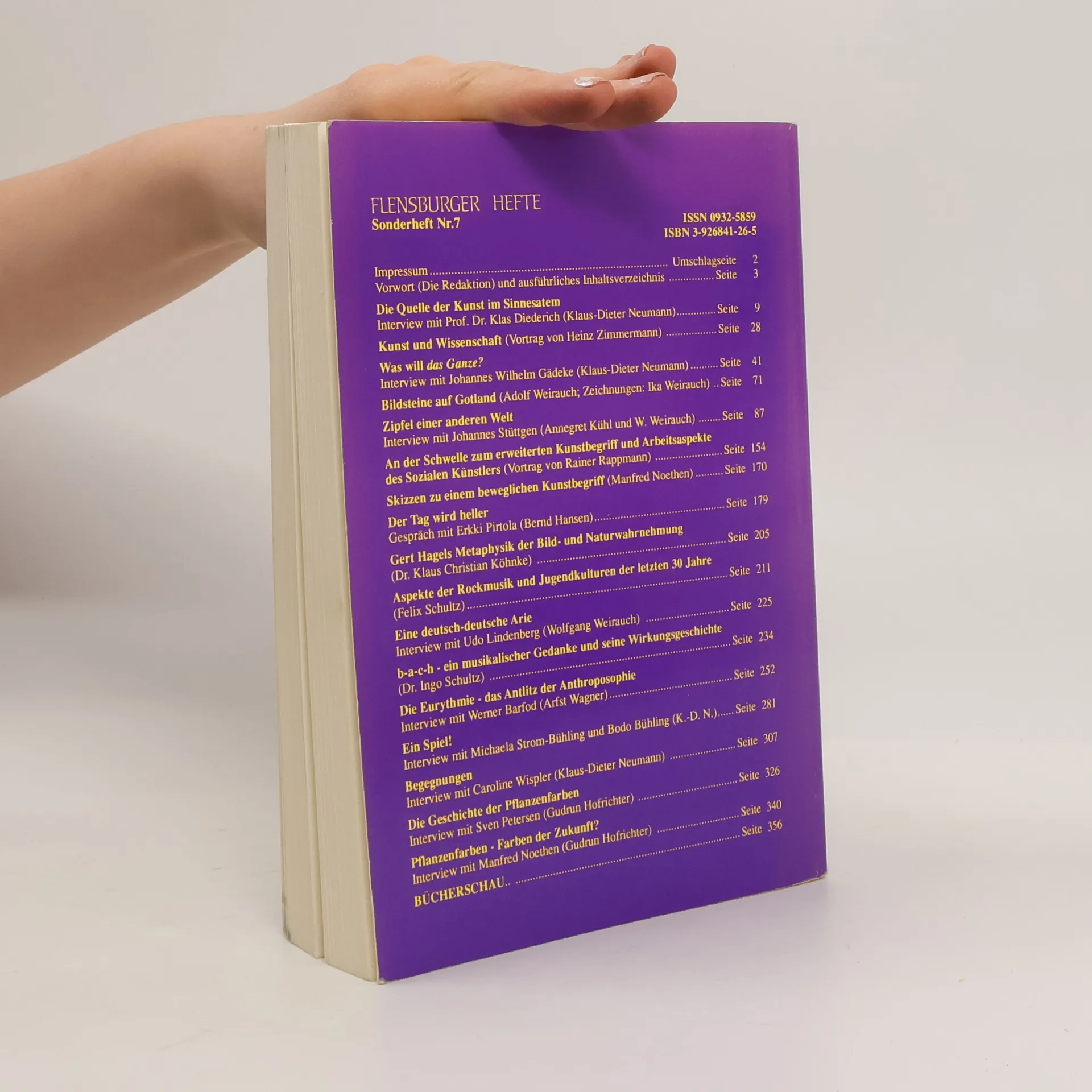 Mit dem vorliegenden Buch haben wir den Versuch unternommen, aus dem weiten Themenfeld der Kunst einige Grundfragen zu erarbeiten und näher zu betrachten. So richtig der Goethesche Gedanke ist, daß die Kunst keiner Vermittlung bedarf - weil sie selbst die Vermittlerin ist -, so notwendig ist es, ihn besonders heute zunächst als Anforderung an die Kunstwirkung zu denken und nicht als Tatsachenbeschreibung. Die Kunst hat heute ihren bisher maximalen Entfernungsgrad von einer unmittelbaren Wirksamkeit erreicht, auch was ihre kulturtragende Bedeutung und ihre Volksnähe betrifft. Der einzelne vermag es nur selten, sich der vermittelnden Wirksamkeit aufzuschließen, weil zum einen seine Bewußtseinshaltung ihm oft einen Zugang versperrt, zum anderen aber auch die Kunst in ihrer heutigen Form in weiten Zügen nichts wesentliches vermittelt. Es bedarf in der Gegenwart, sich der Wirkung und den Aufgaben der Kunst bewußtzuwerden, sie auch begrifflich zu fassen, um sie aufs Neue zu einer kulturtragenden und gesellschaftsgestaltenden Kraft werden zu lassen. - Aus dem Inhalt: grundlegende Betrachtungen zur Kunst und zum anthroposophischen Kunstimpuls;Bildsteine auf Gotland; Beuys und die Fettecke; der anthroposophisch erweiterte Kunstbegriff; anthroposophische Malerei und Plastik; Udo Lindenberg und die DDR; das b-a-c-h-Motiv und seine Wirkensgeschichte; Aspekte der Rockmusik und Jugendkultur der 60er, 70er und 80er Jahre; Eurythmie; anthroposophische Sprachgestaltung; die Geschichte der Pflanzenfarben.