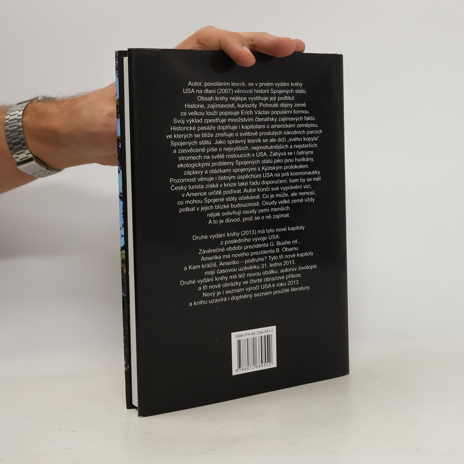 Autor, povoláním lesník, se v prvém vydání knihy USA na dlani (2007) věnoval historii Spojených států. Druhé vydání knihy (2013) má tyto nové kapitoly z posledního vývoje USA: Závěrečné období prezidenta G. Bushe ml., Amerika má nového prezidenta B. Obamu a Kam kráčíš, Ameriko – podruhé? Tři nové kapitoly mají časovou uzávěrku 31. ledna 2013