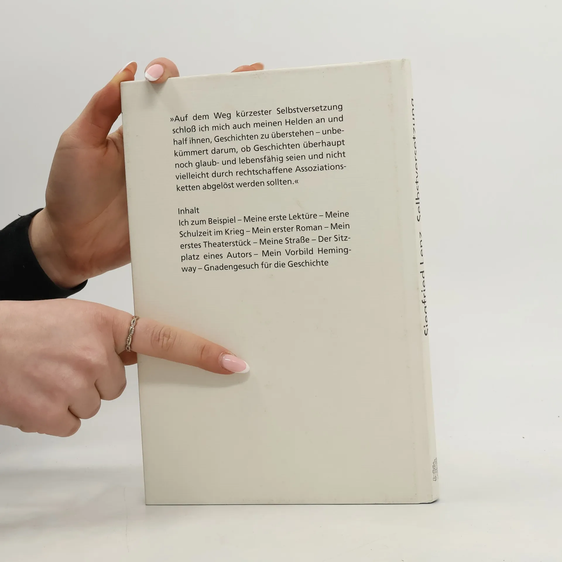 Selbstversetzung ist für Siegfried Lenz die elementare Voraussetzung seines Schreibens. Sie bedeutet, so formulierte er einmal, »von sich abzusehen und die Identität in der Vorstellung zu wechseln ... Dies sollte mit einer Unbedingtheit geschehen, die den Schriftsteller wirklich verpflichtet, sich völlig aus dem Spiel zu nehmen. Dabei kommt er natürlich in eine doppelte Rolle ... Man muß über den anderen Bescheid wissen und gleichzeitig über seine eigenen Gefühle, die den anderen betreffen. Man muß in jedem Augenblick des Schreibens wissen, wie dieser andere zum Vorschein gebracht wird.“In diesem Band bringt Siegfried Lenz uns erstmals sich selbst, „diesen anderen“ gleichen Namens, in autobiographischen Geschichten näher. Es sind Geschichten über seine Anfänge – in Leben und Schreiben: Lenz führt uns in das Masuren seiner Kindheit, die „Perle Ostpreußens“, er nimmt uns mit in die große weite Welt seiner ersten Lektüre, und er bringt uns wieder zurück, notgedrungen, durch seine Erlebnisse in Krieg und Nachkrieg. Diese Erfahrungen waren der Anlaß sowohl für seinen ersten Roman als auch für sein erstes Theaterstück, das ihn, so ein damaliger Kritiker, „über Nacht“ berühmt gemacht hatte. Über ihre Entstehung schreibt Lenz mit einem ganz persönlichen Blick – ebenso wie über seine neue Heimat, die er in Hamburg gefunden hat. Zuhause gefühlt hat sich der vielgerühmte Geschichtenerzähler aber immer in der Sprache, weshalb drei Essays über die wegweisenden Grundlinien seines Schreibens diesen Band anläßlich des 80. Geburtstages von Siegfried Lenz beschließen.