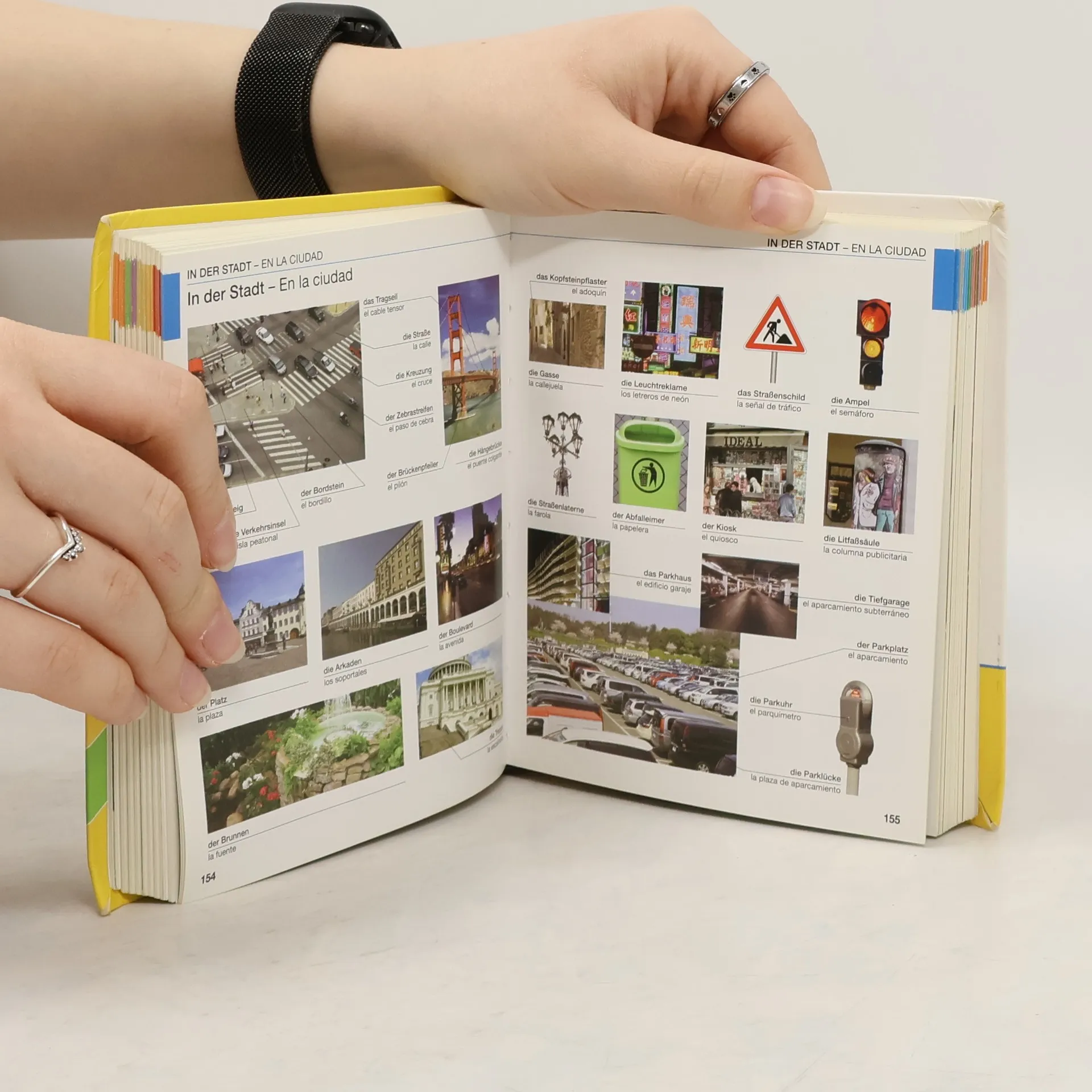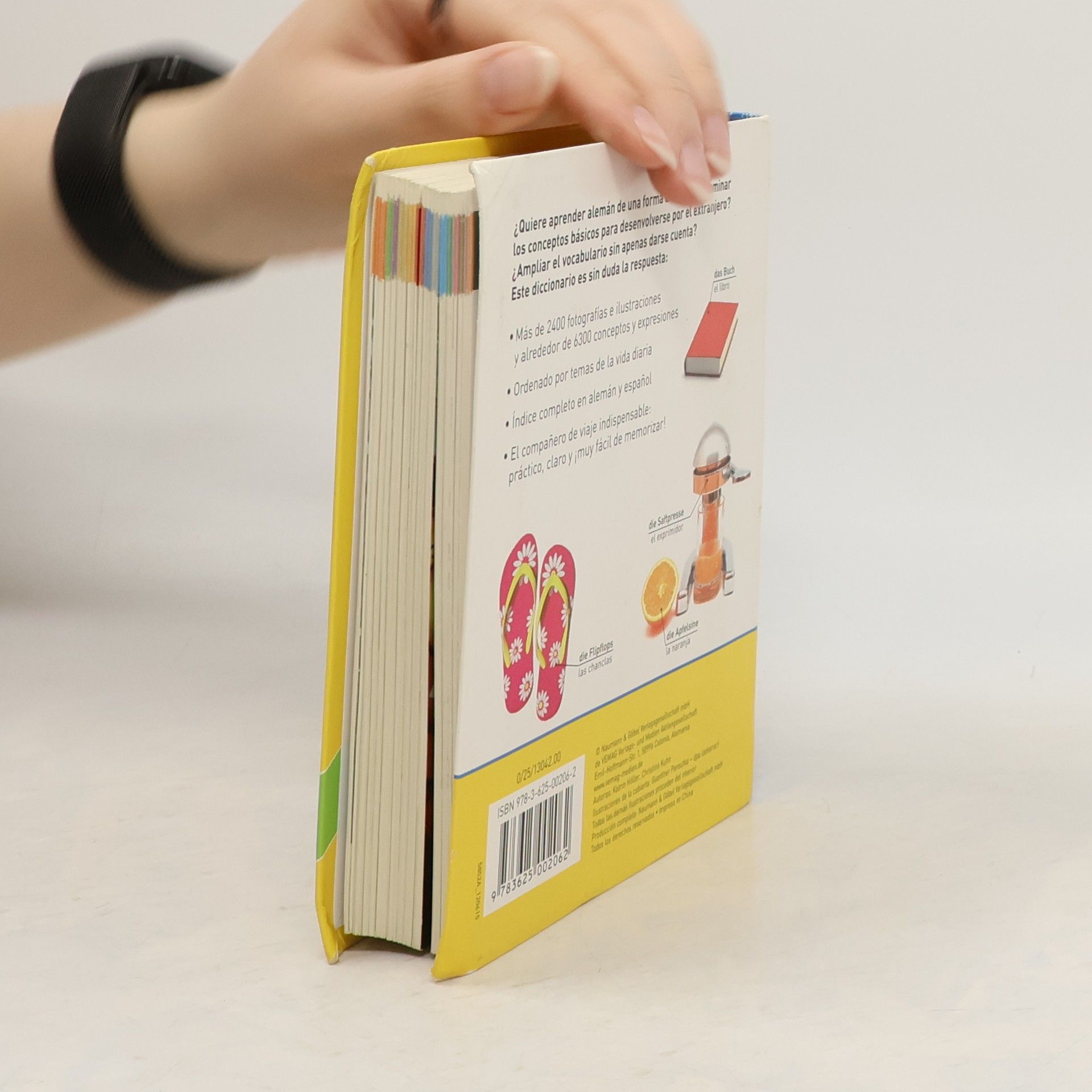 "Más de 2400 fotografías e ilustraciones y alrededor de 6300 conceptos y expresiones.Ordenado por temas de la vida diaria.Índice completo en alemán y español.El compañero de viaje indispensable: práctico, claro y ¡muy fácil de memorizar!"