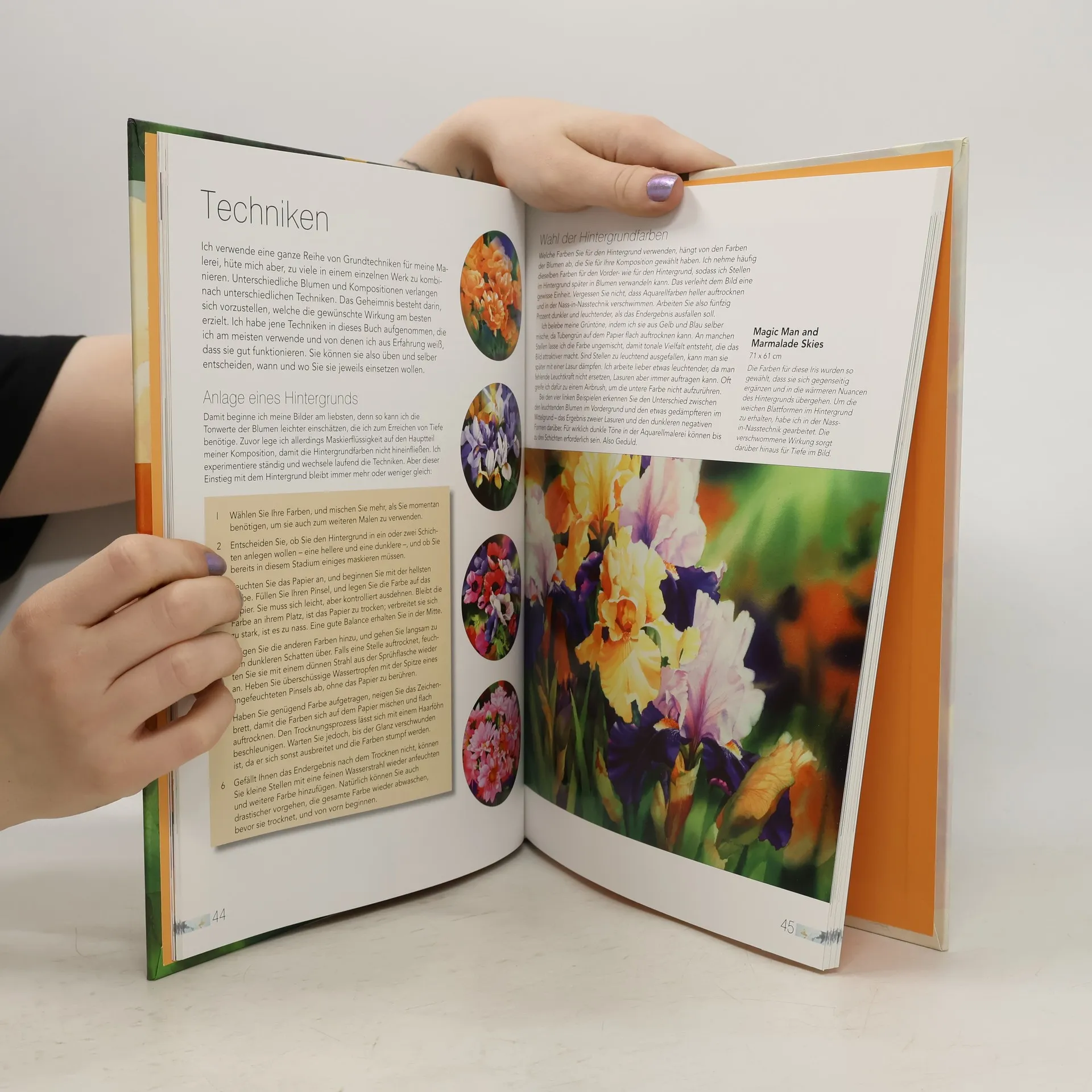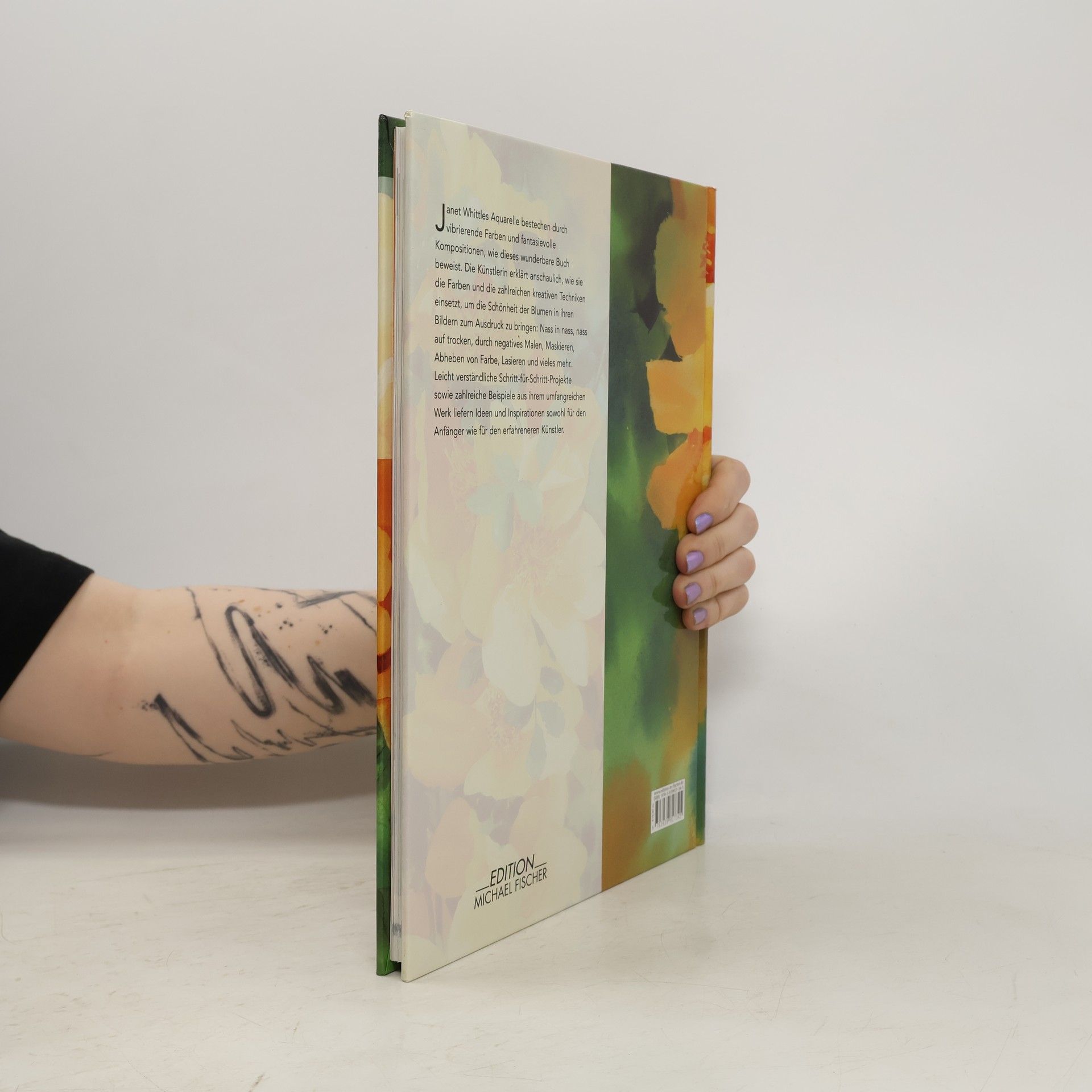 Janet Whittle’s Aquarelle bestechen durch vibrierende Farben und fantasievolle Kompositionen, wie dieses wunderbare Buch beweist. Die Künstlerin erklärt anschaulich, wie sie die Farben und die zahlreichen kreativen Techniken einsetzt, um die Schönheit der Blumen in ihren Bildern zum Ausdruck zu bringen: Nass in nass, nass auf trocken, durch negatives Malen, Maskieren, Abheben von Farbe, Lasieren und vieles mehr. Leicht verständliche Schritt-für- Schritt-Projekte sowie zahlreiche Beispiele aus ihrem umfangreichen Werk liefern Ideen und Inspirationen sowohl für den Anfänger wie für den erfahreneren Künstler. „… ein sehr farbenfrohes Buch mit herrlichen Fotos und Bildern, das jeden anspricht, der sein Können auf dem Gebiet der Blumenmalerei als Aquarell erweitern möchte.“ Popular Crafts Magazine