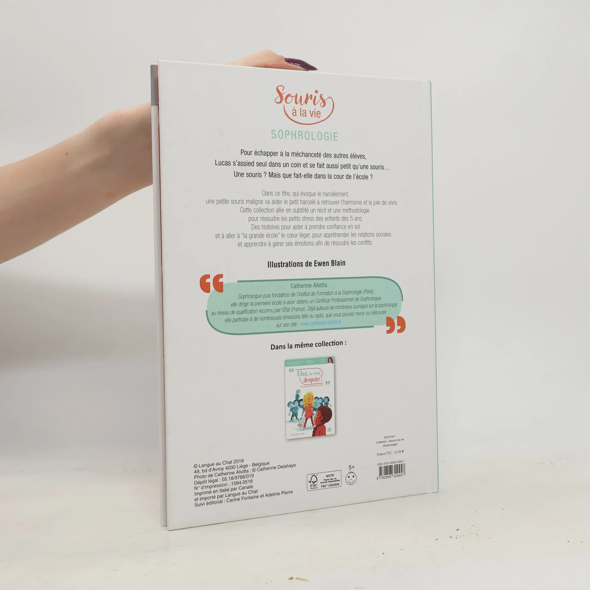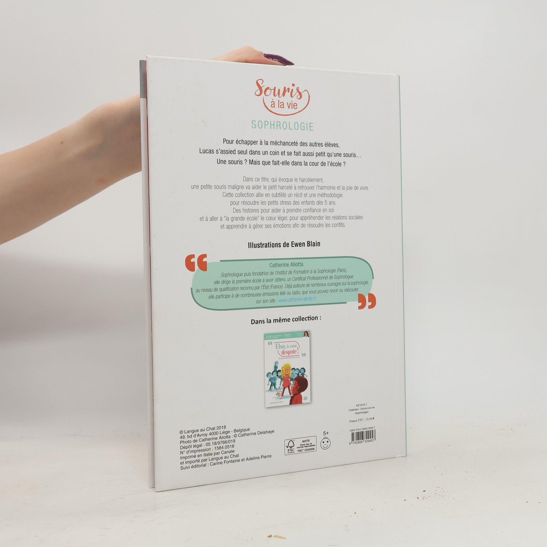Pour échapper à la méchanceté des autres élèves, Lucas s'assied seul dans un coin et se fait aussi petit qu'une souris... Une souris ? Mais que fait-elle dans la cour de l'école ? Dans ce titre, qui évoque le harcèlement, une petite souris maligne va aider le petit harcelé à retrouver l'harmonie et la joie de vivre. Cette collection allie en subtilité un récit et une méthodologie pour résoudre les petits stress des enfants dès 5 ans. Des histoires pour aider à prendre confiance en soi et à aller à "la grande école" le coeur léger, pour appréhender les relations sociales et apprendre à gérer ses émotions afin de résoudre les conflits. Des conseils pratiques expliqués et illustrés pas à pas par la sophrologue et pédagogue Catherine Aliotta : "La sophrologie est un ensemble de méthodes psychocorporelles qui visent au mieux-être. Elles associent la respiration, la décontraction musculaire et la visualisation d'images positives".