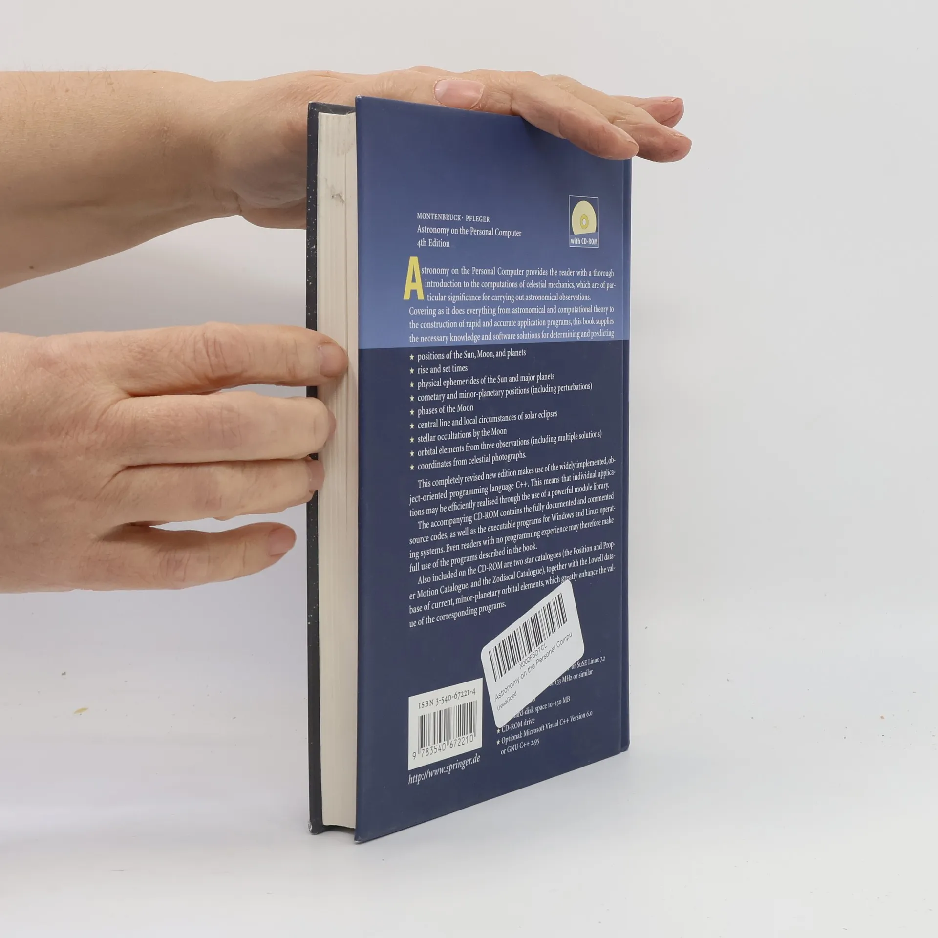 Astronomy on the Personal Computer provides the reader with a thorough introduction to the computation of celestial mechanics, which is of particular significance to astronomical observation. Covering everything from astronomical and computational theory to the construction of rapid and accurate applications programs, this book supplies the necessary knowledge and software solutions for determining and predicting the positions of the Sun, Moon, planets, minor planets and comets, solar eclipses, stellar occultations by the Moon, phases of the Moon and much more. This completely revised edition makes use of the widely implemented programming language C++, and individual applications may be efficiently realized through the use of a powerful module library. The material previously available on an accompanying CD-ROM, now at extras. springer. com, contains, in addition to the complete, fully documented and commented source codes, the executable programs for use with the Windows 98/2000/XP and LINUX operating systems.