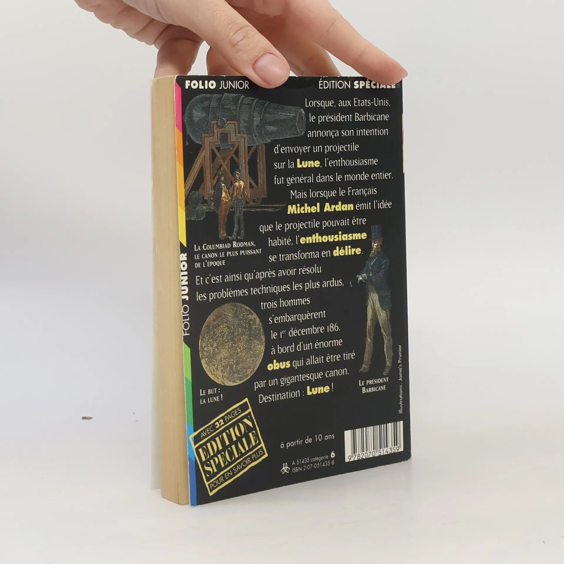 Lorsque, aux Etats-Unis, le président Barbicane annonça son intention d'envoyer un projectile sur la Lune, l'enthousiasme fut général dans le monde entier. Mais lorsque le français Michel Ardan émit l'idée que le projectile pouvait être habité, l'enthousiasme se transforma en délire. Et c'est ainsi qu'après avoir résolu les problèmes techniques les plus ardus, trois hommes s'embarquèrent le 1er décembre 186 à bord d'un énorme obus qui allait être tiré par un gigantesque canon. Destination : Lune !