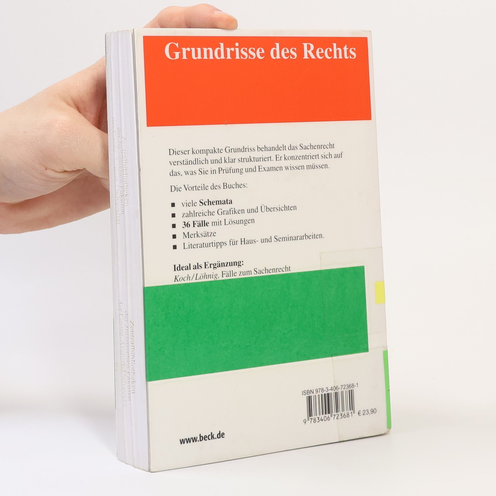 Dieser kompakte Grundriss behandelt das Sachenrecht verständlich und klar strukturiert. Er konzentriert sich auf das, was Sie in Prüfung und Examen wissen müssen. Die Vorteile des Buches: â–ª viele Schemata â–ª zahlreiche Grafiken und Übersichten â–ª 36 Fälle mit Lösungen â–ª Merksätze â–ª Literaturtipps für Haus- und Seminararbeiten. Ideal als Ergänzung: Koch/Löhnig, Fälle zum Sachenrecht
