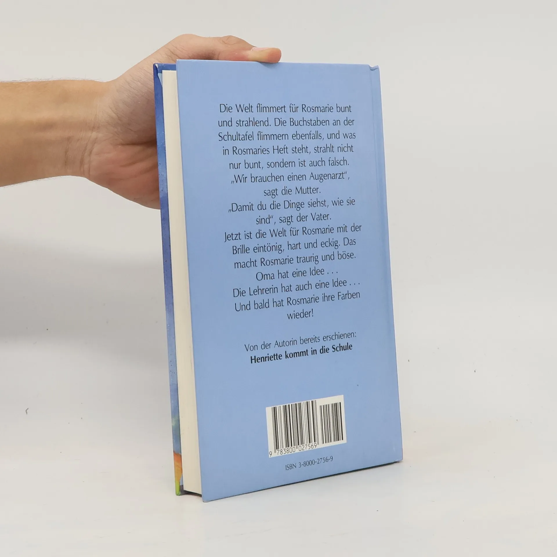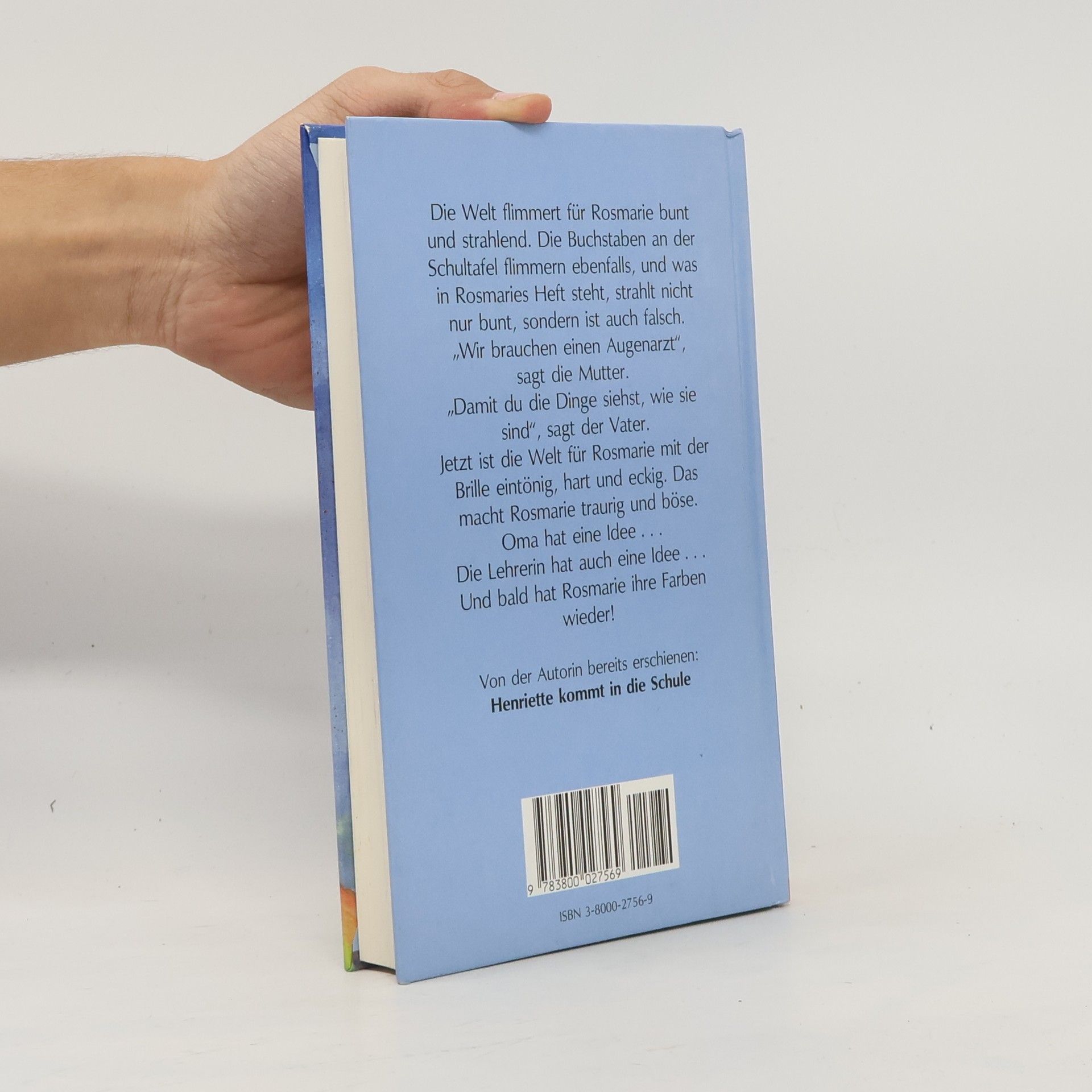 Die Welt flimmert für Rosmarie bunt und strahlend. Die Buchstaben an der Schultafel flimmern ebenfalls, und was in Rosmaries Heft steht, strahlt nicht nur bunt, sondern ist auch falsch. "Wir brauchen einen Augenarzt", sagt die Mutter. "Damit du die Dinge siehst, wie sie sind", sagt der Vater. Jetzt ist die Welt für Rosmarie mit der Brille eintönig, hart und eckig. Das macht Rosmarie traurig und böse. Oma hat eine Idee... Die Lehrerin hat auch eine Idee... Und bald hat Rosmarie ihre Farben wieder!