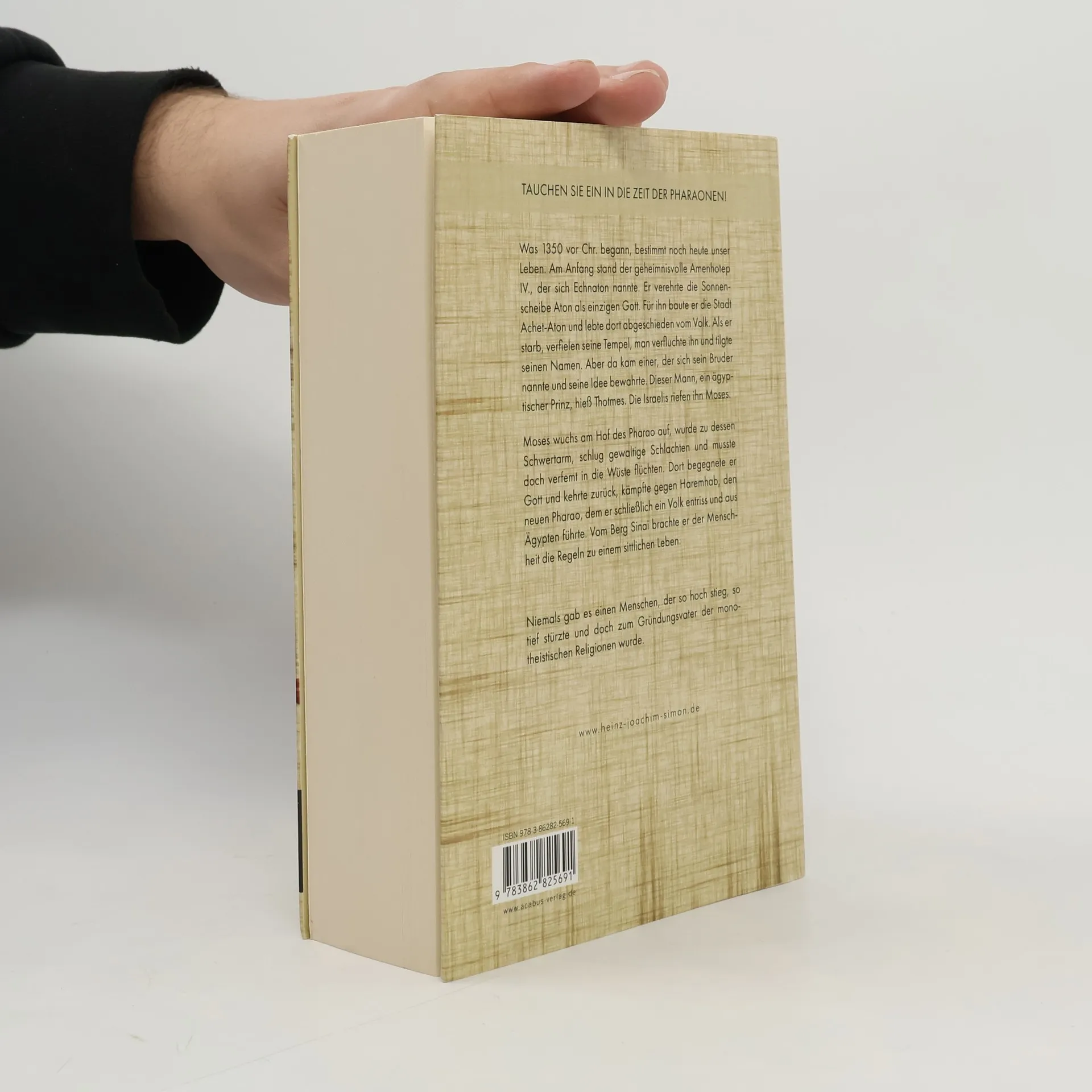 Tauchen Sie ein in die Zeit der Pharaonen! Was 1350 vor Chr. begann, bestimmt noch heute unser Leben. Am Anfang stand der geheimnisvolle Amenhotep IV., der sich Echnaton nannte. Er verehrte die Sonnenscheibe Aton als einzigen Gott. Für ihn baute er die Stadt Achet-Aton und lebte dort abgeschieden vom Volk. Als er starb, verfielen seine Tempel, man verfluchte ihn und tilgte seinen Namen. Aber da kam einer, der sich sein Bruder nannte und seine Idee bewahrte. Dieser Mann, ein ägyptischer Prinz, hieß Thotmes. Die Israelis riefen ihn Moses. Moses wuchs am Hof des Pharao auf, wurde zu dessen Schwertarm, schlug gewaltige Schlachten und musste doch verfemt in die Wüste flüchten. Dort begegnete er Gott und kehrte zurück, kämpfte gegen Haremhab, den neuen Pharao, dem er schließlich ein Volk entriss und aus Ägypten führte. Vom Berg Sinai brachte er der Menschheit die Regeln zu einem sittlichen Leben. Niemals gab es einen Menschen, der so hoch stieg, so tief stürzte und doch zum Gründungsvater der monotheistischen Religionen wurde. www.heinz-joachim-simon.de
