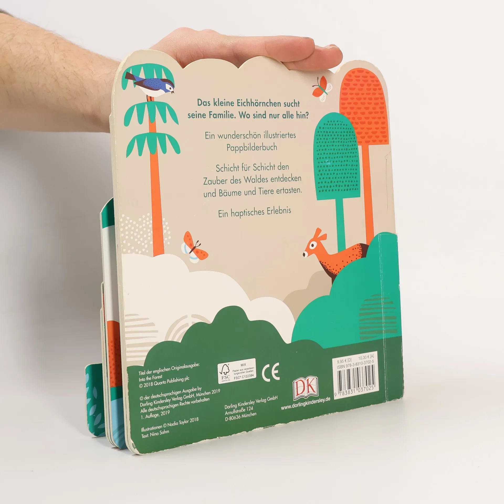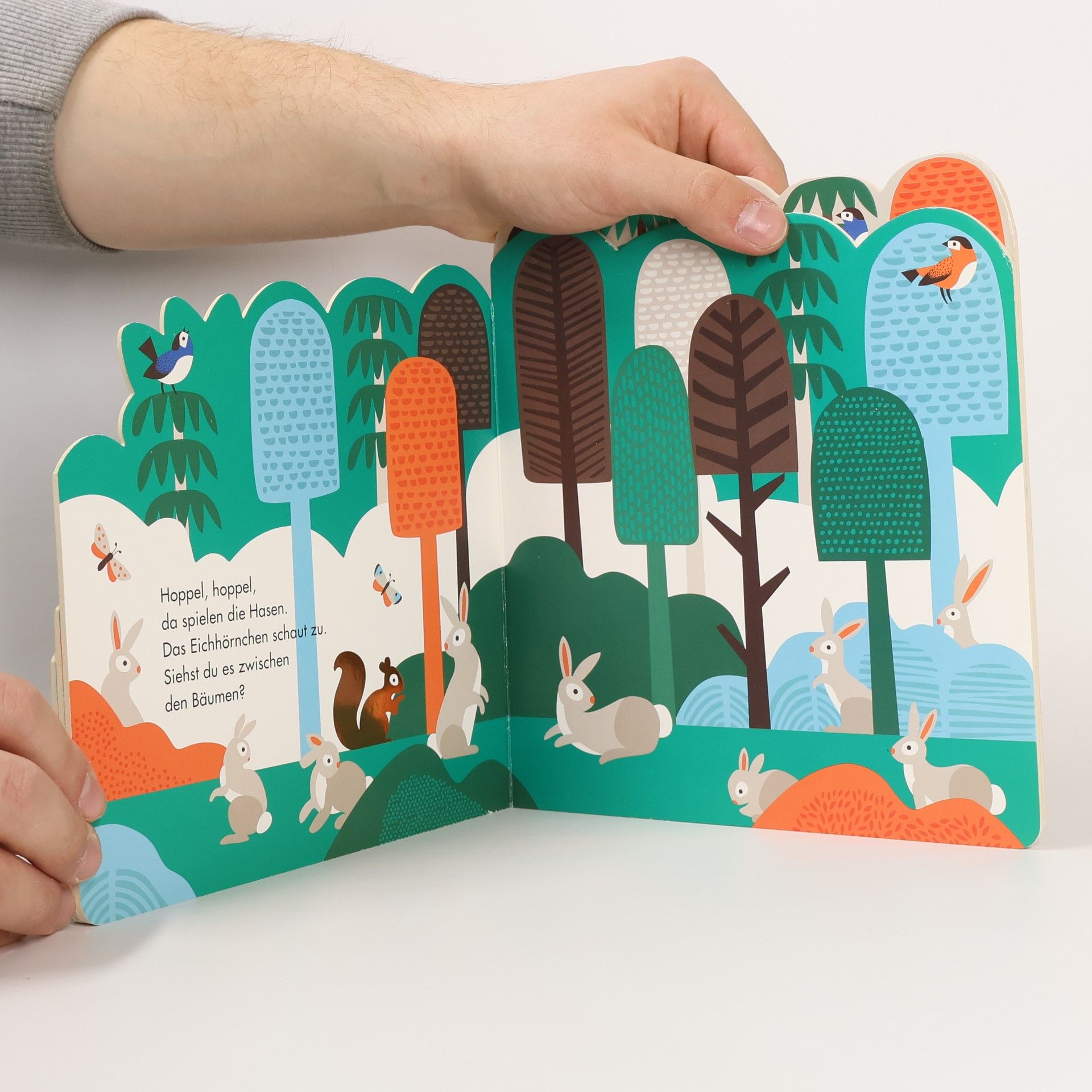 <b> Außergewöhnliches Kinderbuch ab 2 Jahren. </b> Mit dem <b>originellen, hochwertigen Pappbilderbuch</b> wandern Kinder auf noch nie da gewesene Art im Reich der Waldtiere umher. Die verschieden großen <b>Seiten in Baumkronenform</b> sind übereinander gestaffelt angeordnet und lassen sich nach und nach aufblättern. Individuelle <b>Glanz- und Strukturelemente</b> sowie <b>poetisch gereimte Texte</b> machen die Seiten mit <b>Panorama-Stanzung</b> zu etwas ganz Besonderem. Mit witzigem Guckloch im Cover! <b>Zauberhaft illustriertes Bilderbuch zum super Preis! </b> • Mit allen Sinnen begreifen. • Einmalig kreative Gestaltung. • Ausgefallene Illustrationen. • Kreative Strukturelemente. • Entzückende Texte. <b>✓ Gehen Sie jetzt mit dem Nachwuchs auf eine magische Reise! Ein tolles Geschenkbuch für Kinder!</b>