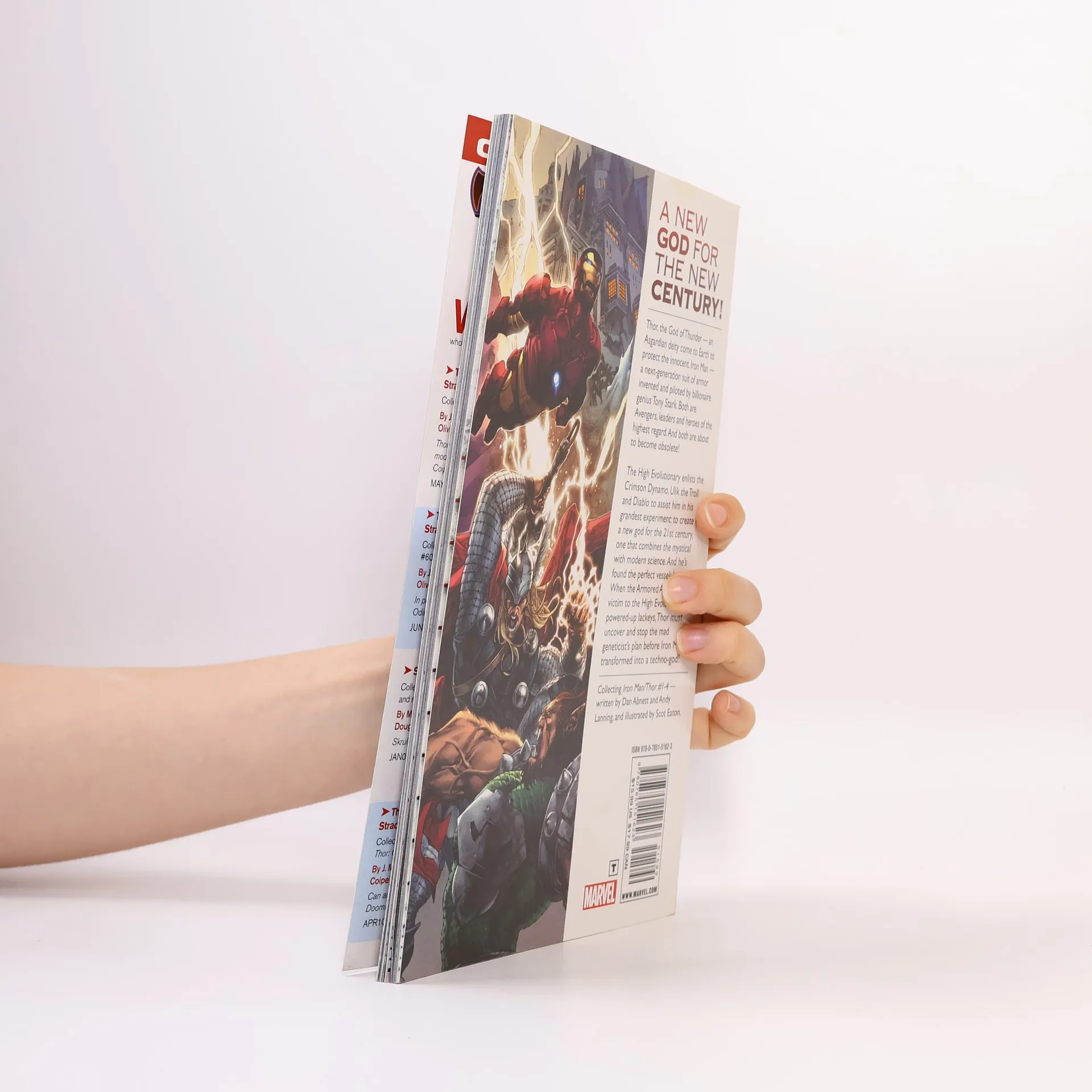 A new god for the new century! Thor, the God of Thunder - an Asgardian deity come to Earth to protect the innocent. Iron Man - a next-generation suit of armor invented and piloted by billionaire genius Tony Stark. Both are Avengers, leaders and heroes of the highest regard. And both are about to become obsolete! The High Evolutionary enlists the Crimson Dynamo, Ulik the Troll and Diablo to assist him in his grandest experiment: to create a new god for the 21st century - one that combines the mystical with modern science. And he's found the perfect vessel: Iron Man! When the Armored Avenger falls victim to the High Evolutionary's powered-up lackeys, Thor must uncover and stop the mad geneticist's plan before Iron Man is transformed into a techno-god! <b>Collecting</b>: <i>Iron Man/Thor</i> 1-4 & material from <i>Thor</i> Spotlight