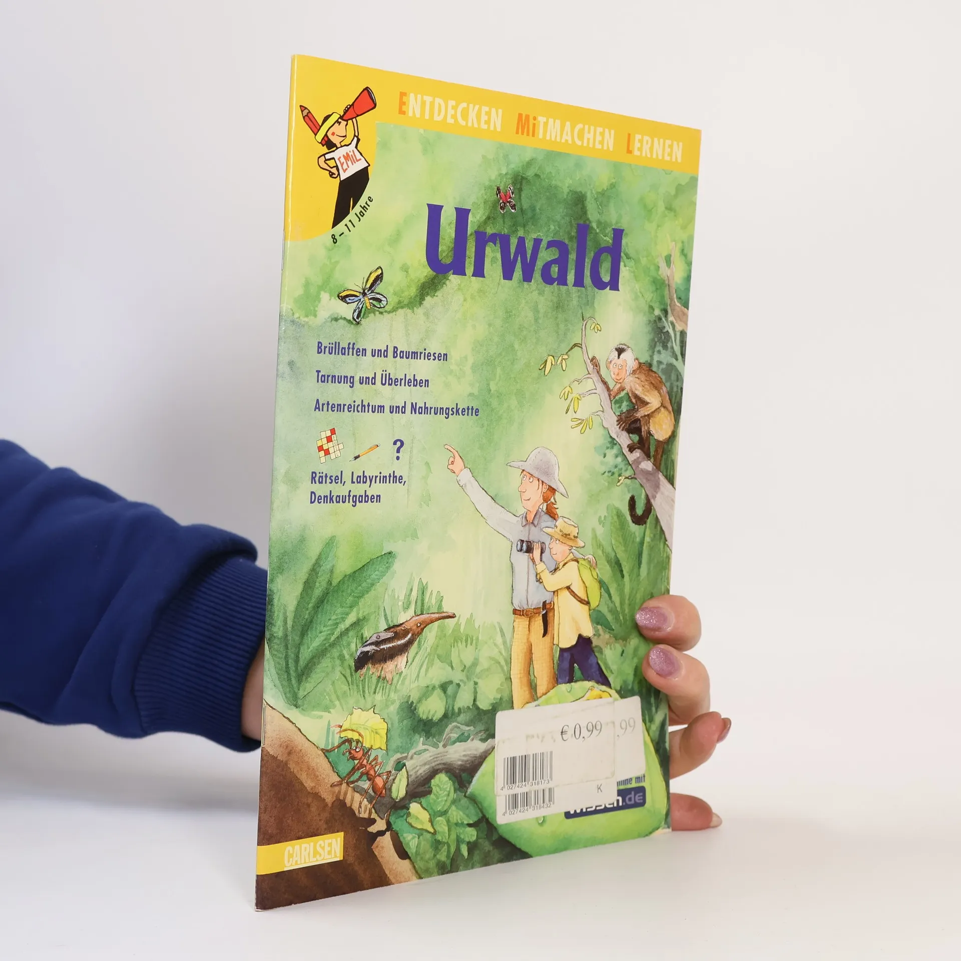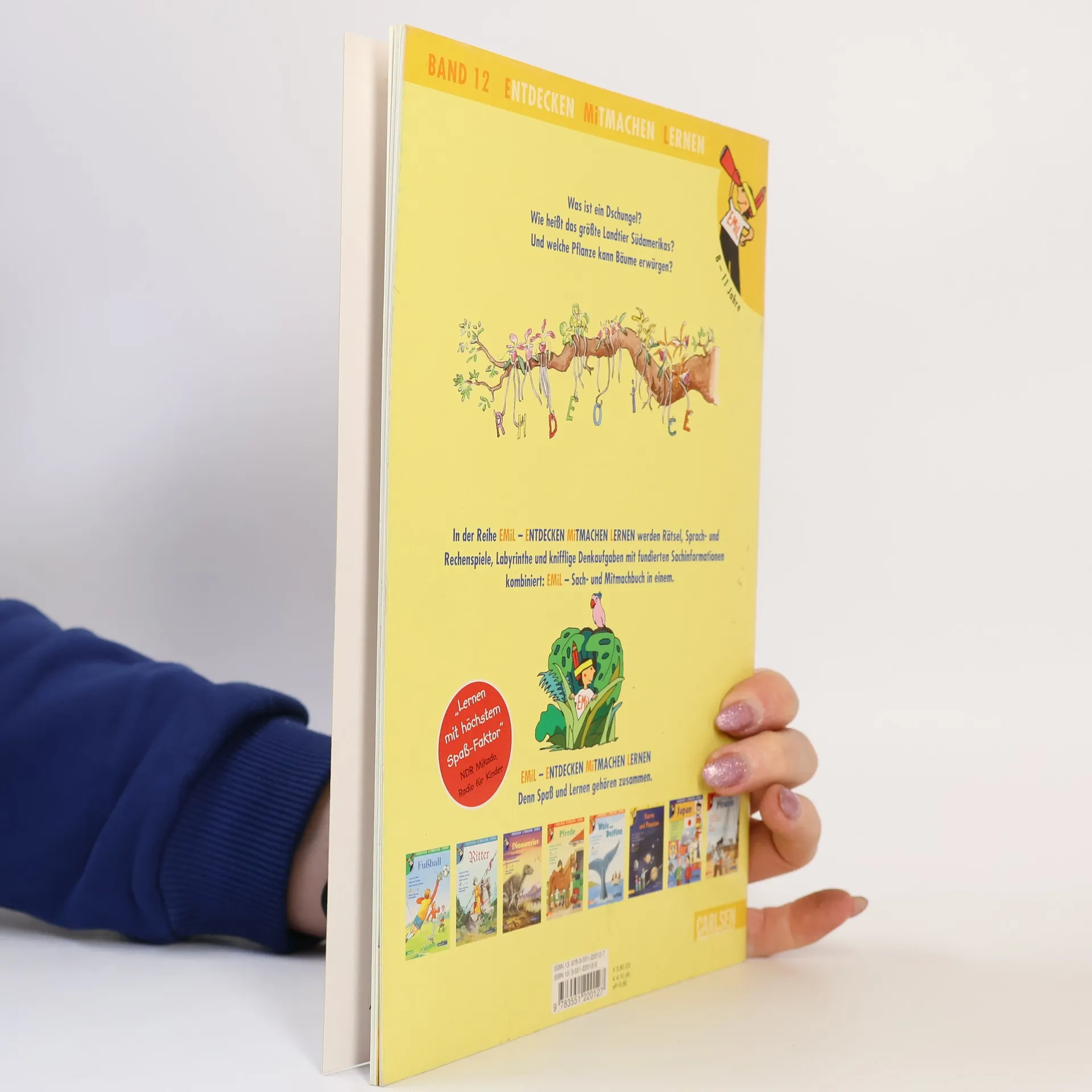Hier werden die Geheimnisse des Dschungels enthüllt. Welches nicht mal 4 Zentimeter große Tier gehört zu den giftigsten Lebewesen der Welt? Und wie tarnt sich die Grüne Hundskopfboa? Lernen hat mit den Sinnen zu tun und es muss Spaß machen. In der Reihe EMiL - Entdecken Mitmachen Lernen gehen Vergnügen und Sachinformationen Hand in Hand. Kinder zwischen 8 und 10 Jahren rätseln und grübeln, tüfteln und knobeln zu spannende Themen. Und ganz nebenbei erfahren sie fundierte Sachinhalte. Geprüft von Fachleuten, Pädagogen und Kindern!"