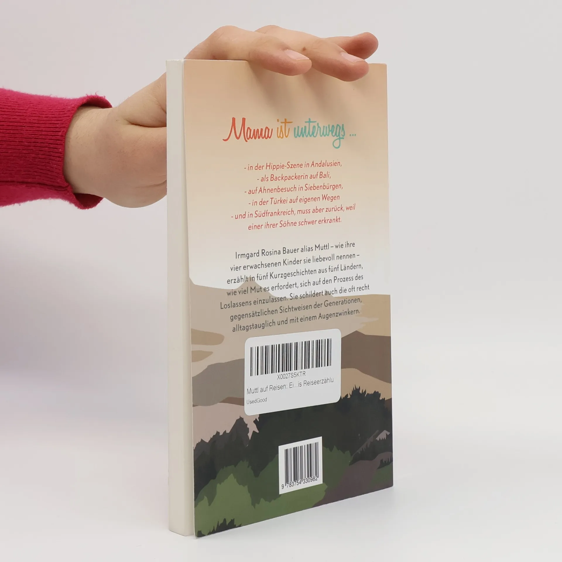Mama ist unterwegs ... - in der Hippie-Szene in Andalusien, - als Backpackerin auf Bali, - auf Ahnenbesuch in Siebenbürgen, - in der Türkei auf eigenen Wegen - und in Südfrankreich, muss aber zurück, weil einer ihrer Söhne schwer erkrankt. Irmgard Rosina Bauer alias Muttl - wie ihre vier erwachsenen Kinder sie liebevoll nennen - erzählt in fünf Kurzgeschichten aus fünf Ländern, wie viel Mut es erfordert, sich auf den Prozess des Loslassens einzulassen. Sie schildert auch die oft recht gegensätzlichen Sichtweisen der Generationen, alltagstauglich und mit einem Augenzwinkern.