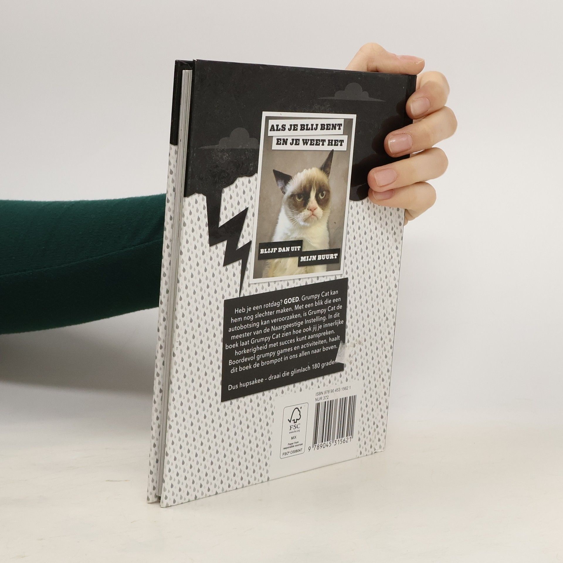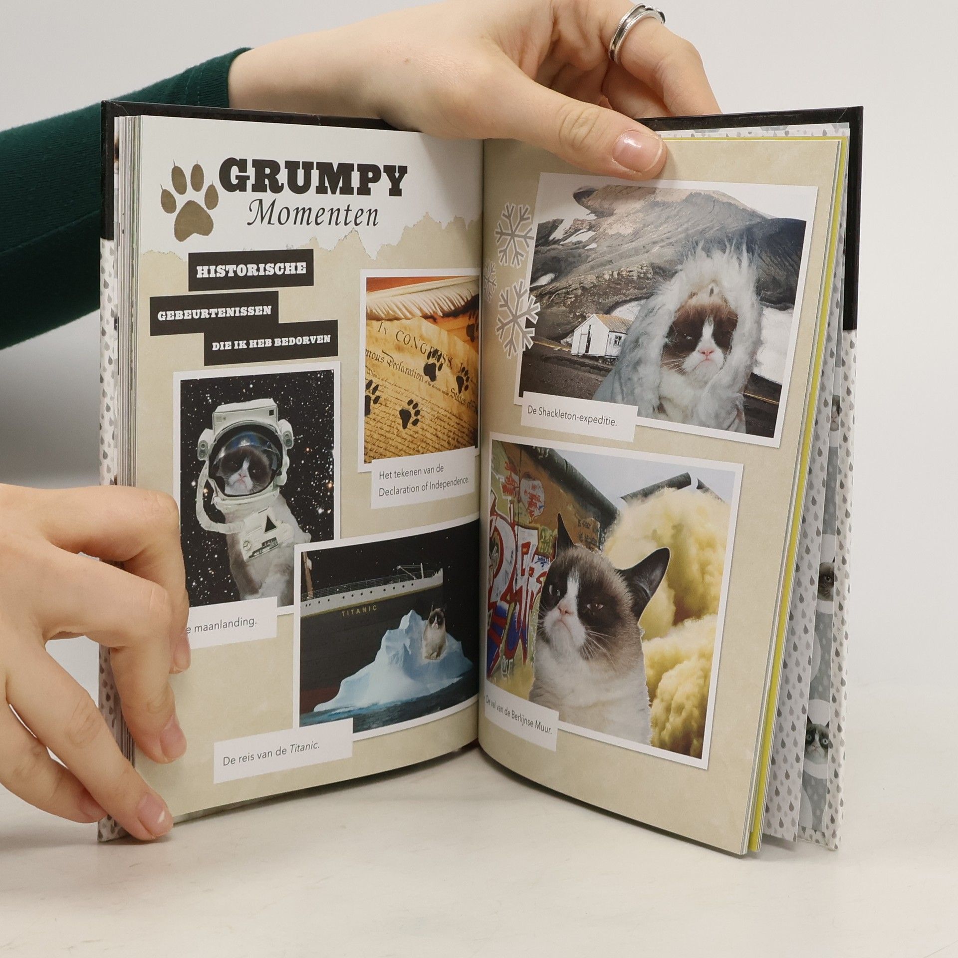 Cartoons, grappen en spelletjes over en rond een chagrijnige kat.