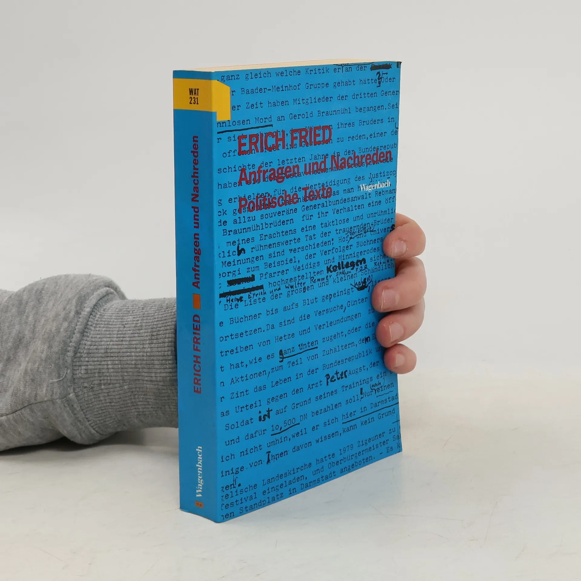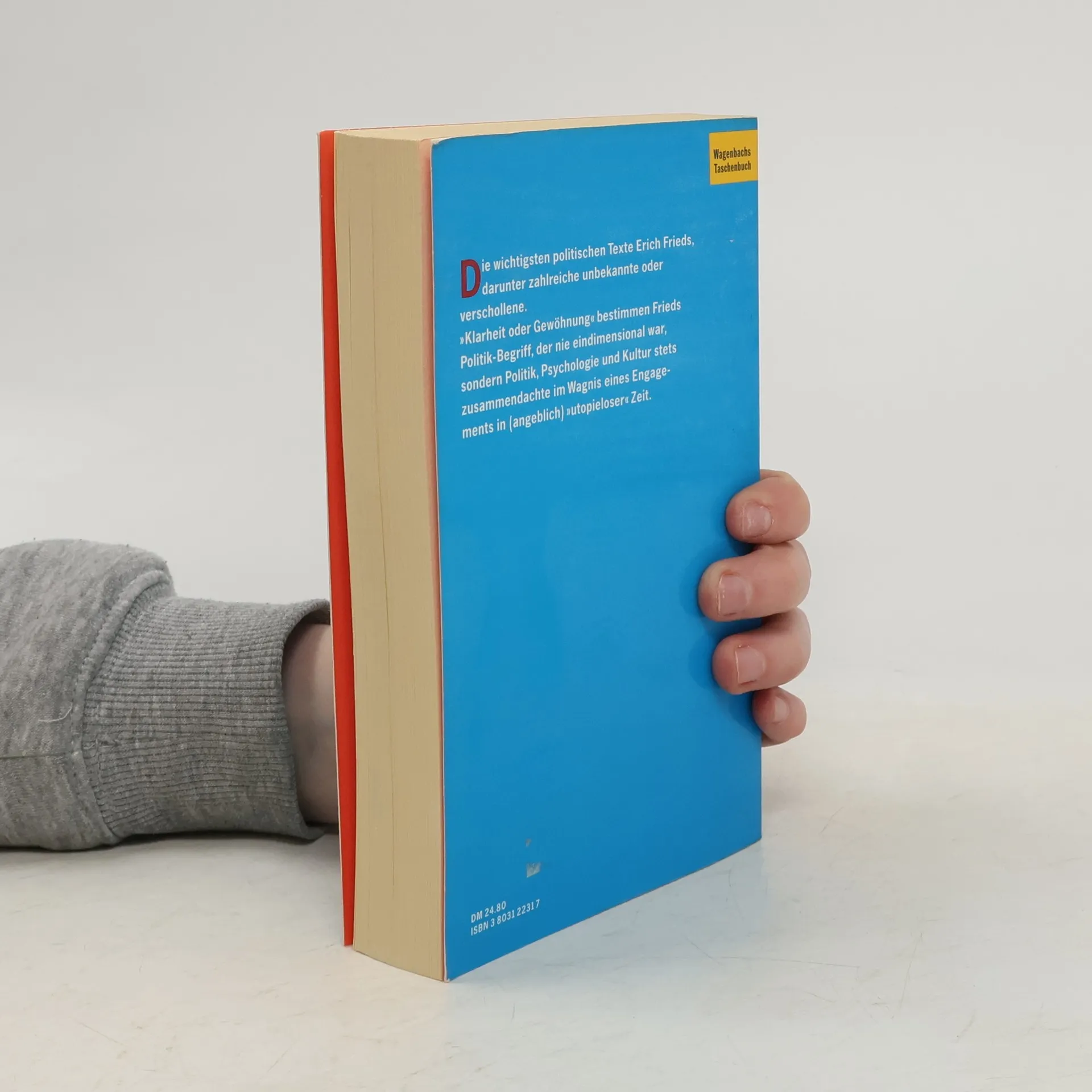 Die wichtigsten politischen Texte Erich Frieds, darunter zahlreiche unbekannte oder verschollene. Zusammengetragen aus längst vergriffenen Büchern, Anthologien, Rundfunkarchiven: Entstanden ist ein eindruckvolles Portrait des politischen Denkens von Erich Fried, von seinen frühen antistalinistischen Rundfunktexten und dem Statement »Warum lebe ich nicht in der Bundesrepublik?« von 1963, über Äußerungen zum deutschen (und österreichischen) Faschismus und zur Wetterlage des »Deutschen Herbstes« (1977), bis zu Fragen nach dem, was links sei, in Ost und West, oder was jüdische Identität bedeute – eingeschlossen die polemische, in Todesnähe formulierte Quintessenz der Büchnerpreis-Rede von 1987.