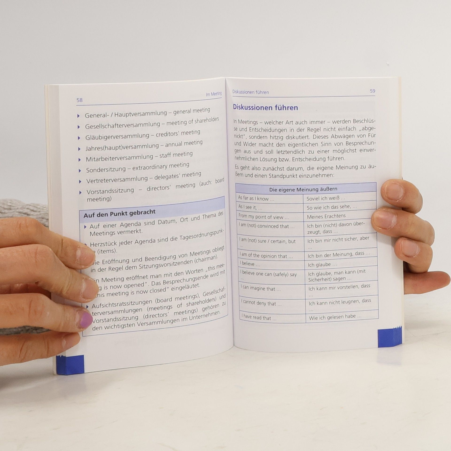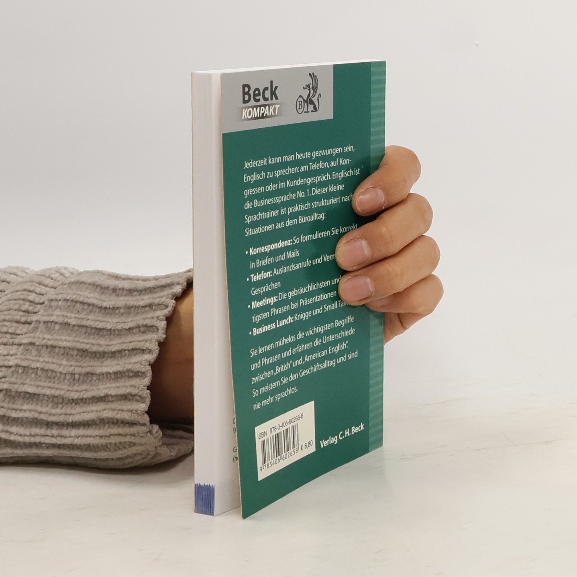 Jederzeit kann man heute gezwungen sein, Englisch zu sprechen: Am Telefon, auf Kongressen oder im Kundengespräch. Englisch ist die Businesssprache No. 1. Dieser kleine Sprachtrainer ist praktisch strukturiert nach Situationen aus dem Büroalltag: Korrespondenz: So formulieren Sie korrekt in Briefen und Mails. Telefon: Auslandsanrufe und Vermittlung von Gesprächen. Meetings: Die gebräuchlichsten und wichtigsten Phrasen bei Präsentationen. Business Lunch: Knigge und Small Talk Tipps. Sie lernen mühelos die wichtigsten Begriffe und Phrasen und erfahren die Unterschiede zwischen “British” und „American English”. So meistern Sie den Geschäftsalltag und sind nie mehr sprachlos.