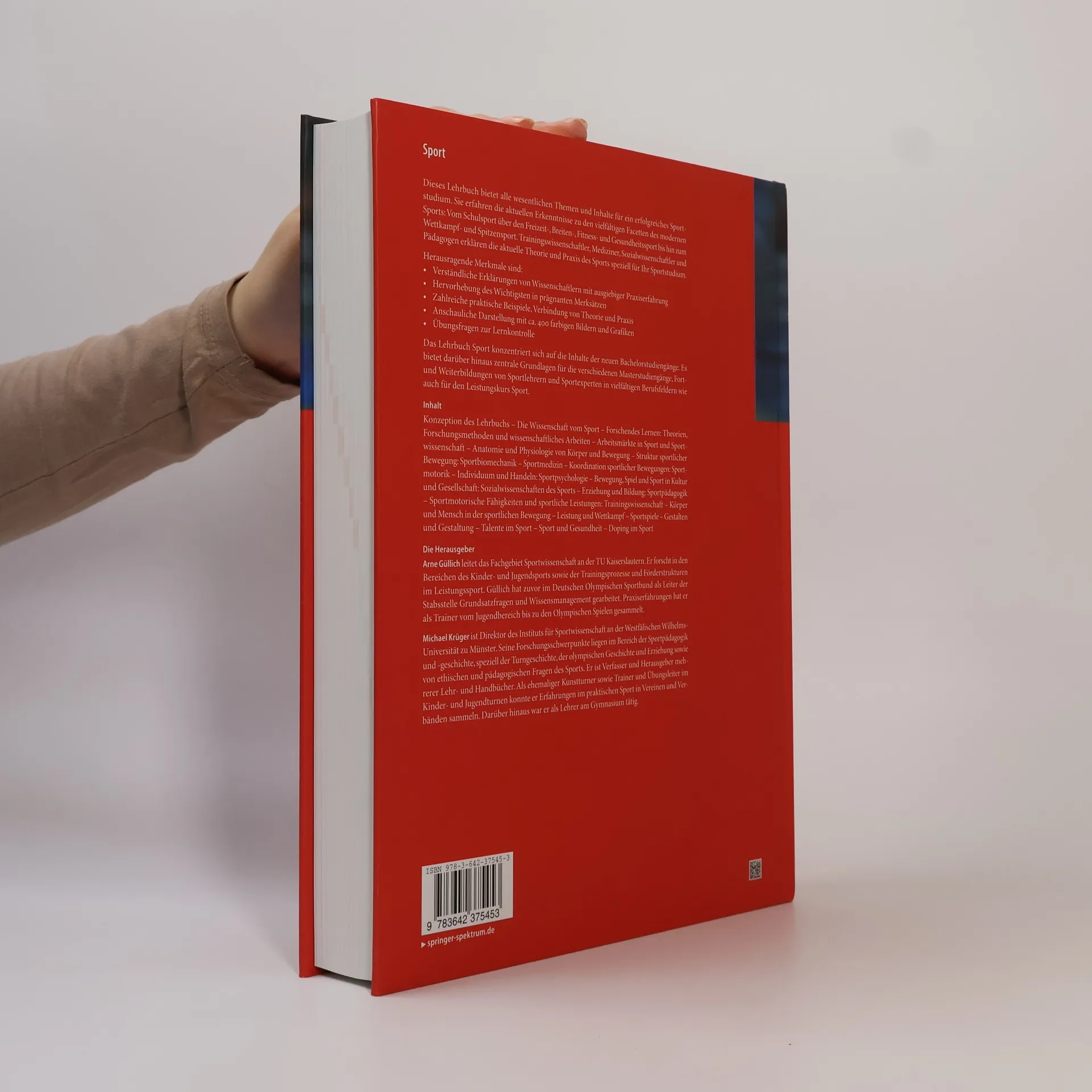 Sport ist überall und nirgends in Schule und Hochschule, im Alltag und im Gesundheitswesen. Bisher war die Ausbildung von Experten und Sportlehrern in den verschiedenen Berufszweigen sehr heterogen. Mit dem Bachelor-Studium und dem Memorandum des deutschen Sportlehrerverbandes stabilisieren sich Kernmodule der sportdidaktischen und sportwissenschaftlichen Studiengänge an deutschsprachigen Hochschulen. Dieses umfassende Lehrbuch Sport setzt hier an. Es bietet alle wesentlichen Themen und Inhalte für ein erfolgreiches Sportstudium. In diesem Stil ist es das erste auf dem Markt, das den gesamten Kerninhalt des Sportstudiums in einem Band anbietet. Vom Schulsport über den Freizeit-, Breiten-, Fitness- und Gesundheitssport bis hin zum Wettkampf- und Spitzensport enthält es alle wesentlichen Themen und Inhalte für ein erfolgreiches Sportstudium. Die Autoren sind renommierte Experten der führenden Hochschulen. Sie sind Trainingswissenschaftler, Mediziner, Sozialwissenschaftler und Pädagogen, die die wesentlichen Inhalte aus Theorie und Praxis des Sports speziell für das Sportstudium kompetent und knapp zusammengestellt haben. Der Text ist lesefreundlich aufbereitet, die wichtigsten Inhalte sind in prägnanten Merksätzen hervorgehoben. Zahlreiche praktische Beispiele und ca. 400 farbige Abbildungen und Grafiken veranschaulichen die Inhalte aus Theorie und Praxis. Übungsfragen zur Lernkontrolle helfen dem Studierenden, sich die Inhalte besser einzuprägen. Dieses voll vierfarbige, abbildungsreiche und didaktisch gut aufbereitete Lehrbuch vermittelt somit das gesamte relevante Grundwissen, ohne das man im Sport nicht auskommt. Obwohl es sich auf die Inhalte der neuen Bachelorstudiengänge konzentriert, bietet es darüber hinaus zentrale Grundlagen für die verschiedenen Masterstudiengänge, Fort- und Weiterbildungen von Sportlehrern und Sportexperten in den vielfältigen Berufsfeldern wie auch für den Leistungskurs Sport.