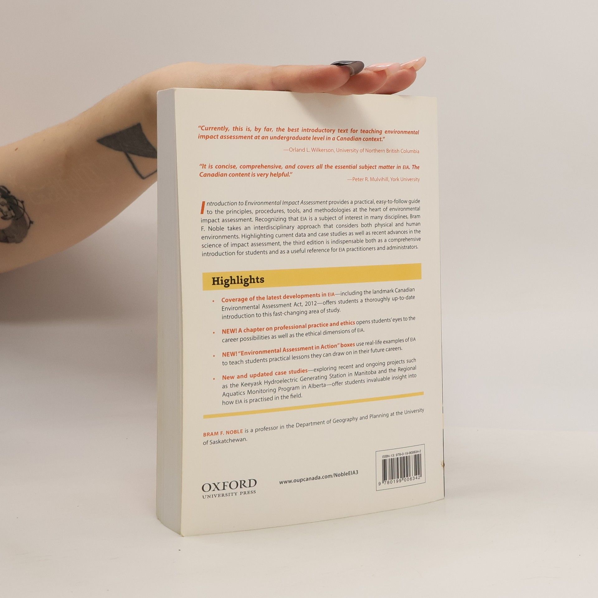 This practical, step-by-step introduction to environmental impact assessment examines EIA tools, procedures, and methodology while taking into account both physical and human environments. With its interdisciplinary approach and extensive Canadian case studies, this text exposes students to EIA at work in the real world.