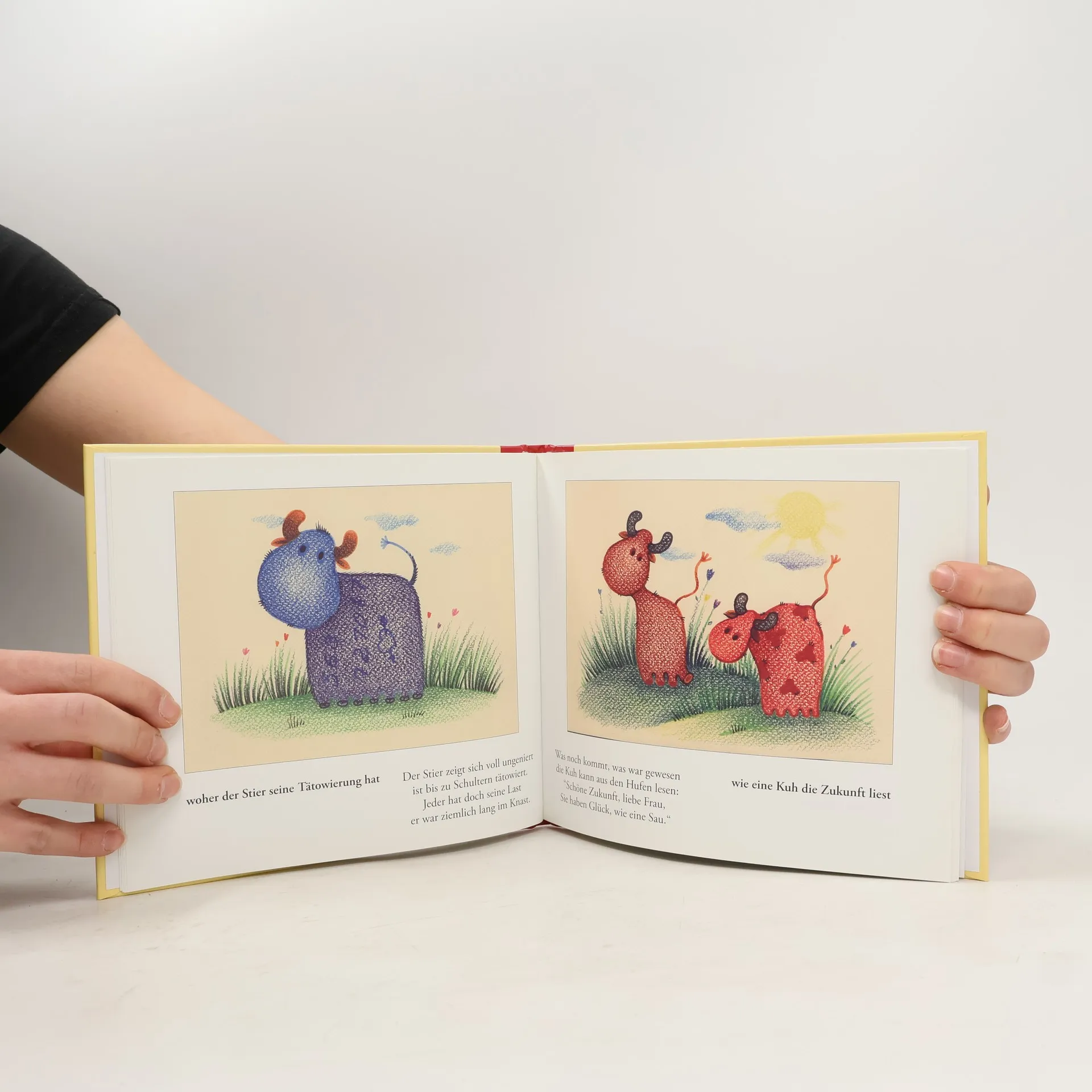 Ani u zvířátek není život vždycky jenom legrace. Právě tak jako lidé, mají i zvířátka svoje všední a někdy i nevšední starosti, ale když se to vezme za správný konec, ze starostí se rukcuk stanou veselé příběhy. Některé pravdivé, možná i trošičku vymyšlené příběhy ze života malých a velkých kraviček vám budeme na příštích stránkách vyprávět, například o tom… Německá verze říkanek.