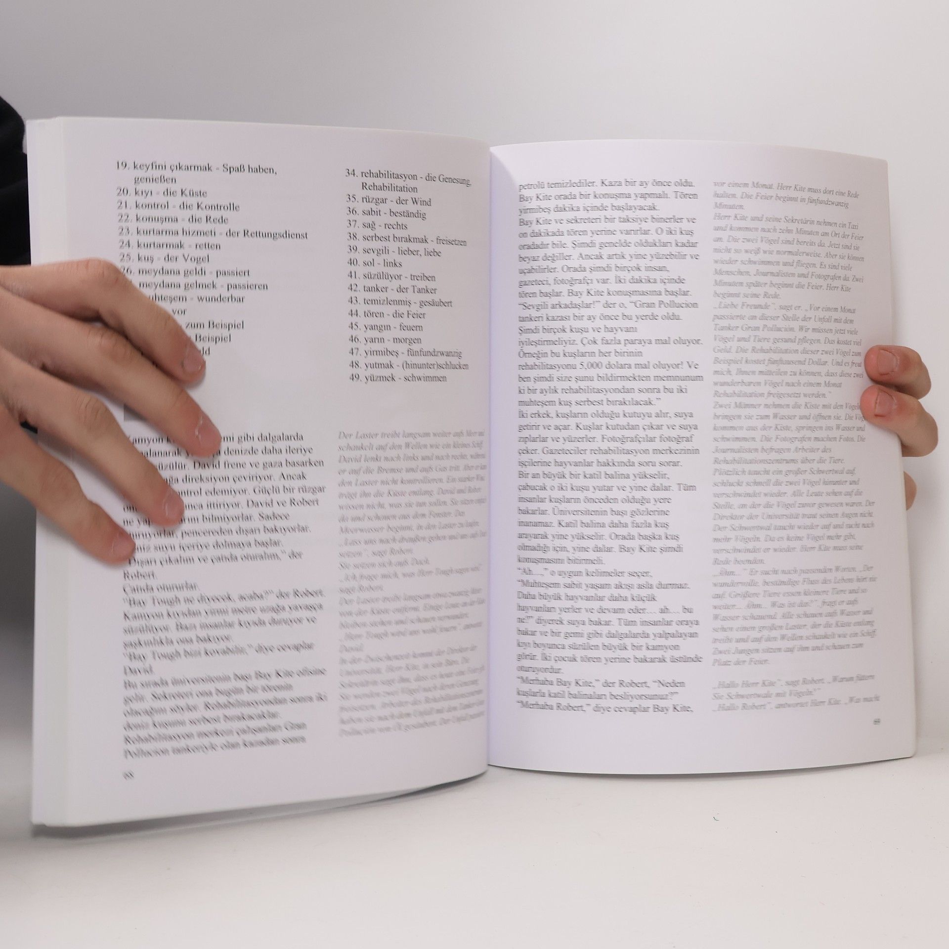 Das Buch enthält einen Kurs für Anfänger und fortgeschrittene Anfänger, wobei die Texte auf Deutsch und auf Türkisch nebeneinanderstehen. Die Motivation des Schülers wird durch lustige Alltagsgeschichten über das Kennenlernen neuer Freunde, Studieren, die Arbeitssuche, das Arbeiten etc. aufrechterhalten. Die dabei verwendete Methode basiert auf der natürlichen menschlichen Gabe, sich Wörter zu merken, die immer wieder und systematisch im Text auftauchen. Sätze werden stets aus den im vorherigen Kapitel erklärten Wörtern gebildet. Das zweite und die folgenden Kapitel des Anfängerkurses haben nur jeweils etwa 30 neue Wörter.