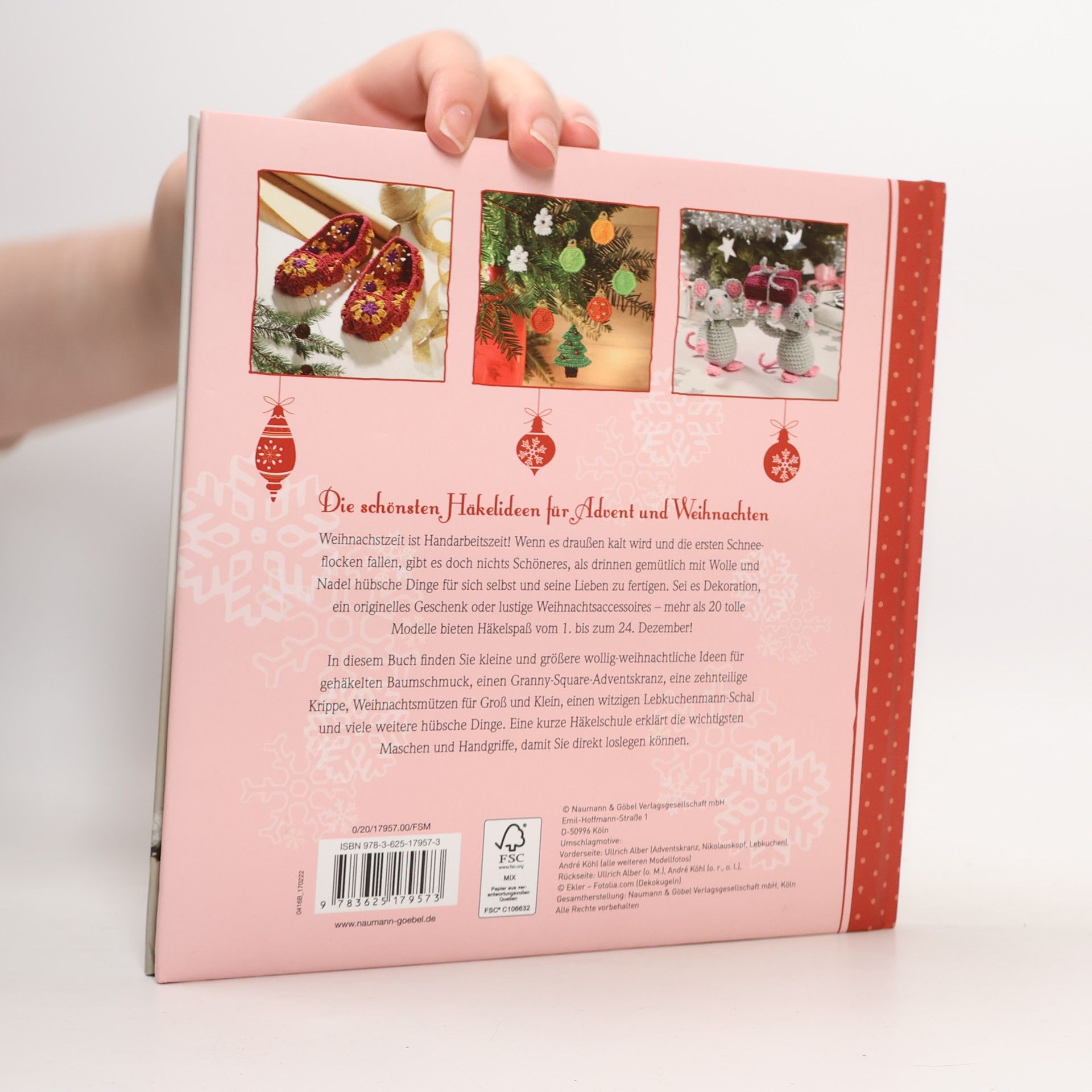 Die schönsten Häkelideen für Advent und Weihnachten • Mehr als 20 tolle Häkelmodelle von Adventskalender bis Weihnachtsbäumchen, von Plätzchenteller bis Weihnachtsfrau-Stulpen, von Türkranz bis Mini-Schneemann • Dekorationen, Geschenkideen und originelle Accessoires mit vielen Anwendungsmöglichkeiten • Inklusive kleiner Häkelschule mit Arbeitsschrittfotos • Die perfekte Geschenkidee für alle Weihnachts- und Häkel-Fans Weihnachtszeit ist Handarbeitszeit! Wenn es draußen kalt wird und die ersten Schneeflocken fallen, gibt es doch nichts Schöneres, als drinnen gemütlich mit Wolle und Nadel hübsche Dinge für sich selbst und seine Lieben zu fertigen. In diesem Buch finden Sie zahlreiche kleine und größere Häkelideen für die Adventszeit und die Weihnachtstage. Häkeln Sie festlichen Baumschmuck, einen Granny-Square-Adventskranz, eine zehnteilige Krippe, einen originellen Lebkuchenmann-Schal und viele weitere, wunderbar weihnachtliche Ideen. Eine kleine Häkelschule hinten im Buch erklärt Ihnen die wichtigsten Maschen und Handgriffe und schon können Sie loslegen. Neben den stimmungsvollen DIY-Ideen machen das handliche Buchformat, der wattierte Umschlag mit glänzend hervorgehobenen Details und die hübschen Fotos das Weihnachtshäkelbuch außerdem zum idealen Geschenk für alle Häkelfans!