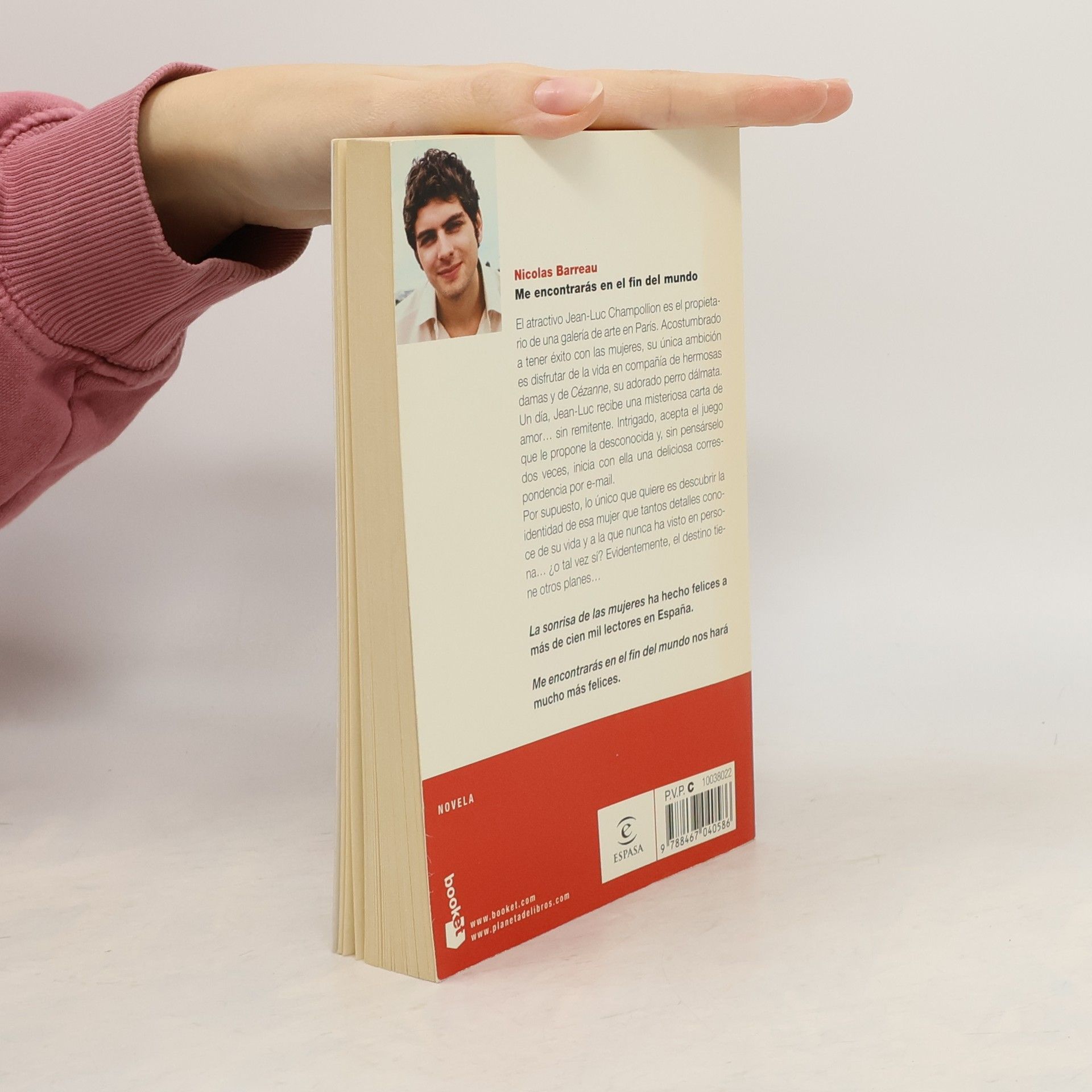 La sonrisa de las mujeres ha hecho felices a más de cien mil lectores en España. Me encontrarás en el fin del mundo nos hará MUCHO MÁS FELICES. El atractivo Jean-Luc Champollion es el propietario de una galería de arte en París. Acostumbrado a tener éxito con las mujeres, su única ambición es vivir en compañía de hermosas damas y de Cézanne, su adorado perro dálmata. Un día, el galerista recibe una misteriosa carta de amor... sin remitente. Ese momento marcará un insospechado giro del destino. Intrigado, Jean-Luc acepta el juego que le propone su desconocida corresponsal y acabará enamorándose de una mujer a la que nunca ha visto en persona.... ¿o tal vez sí?