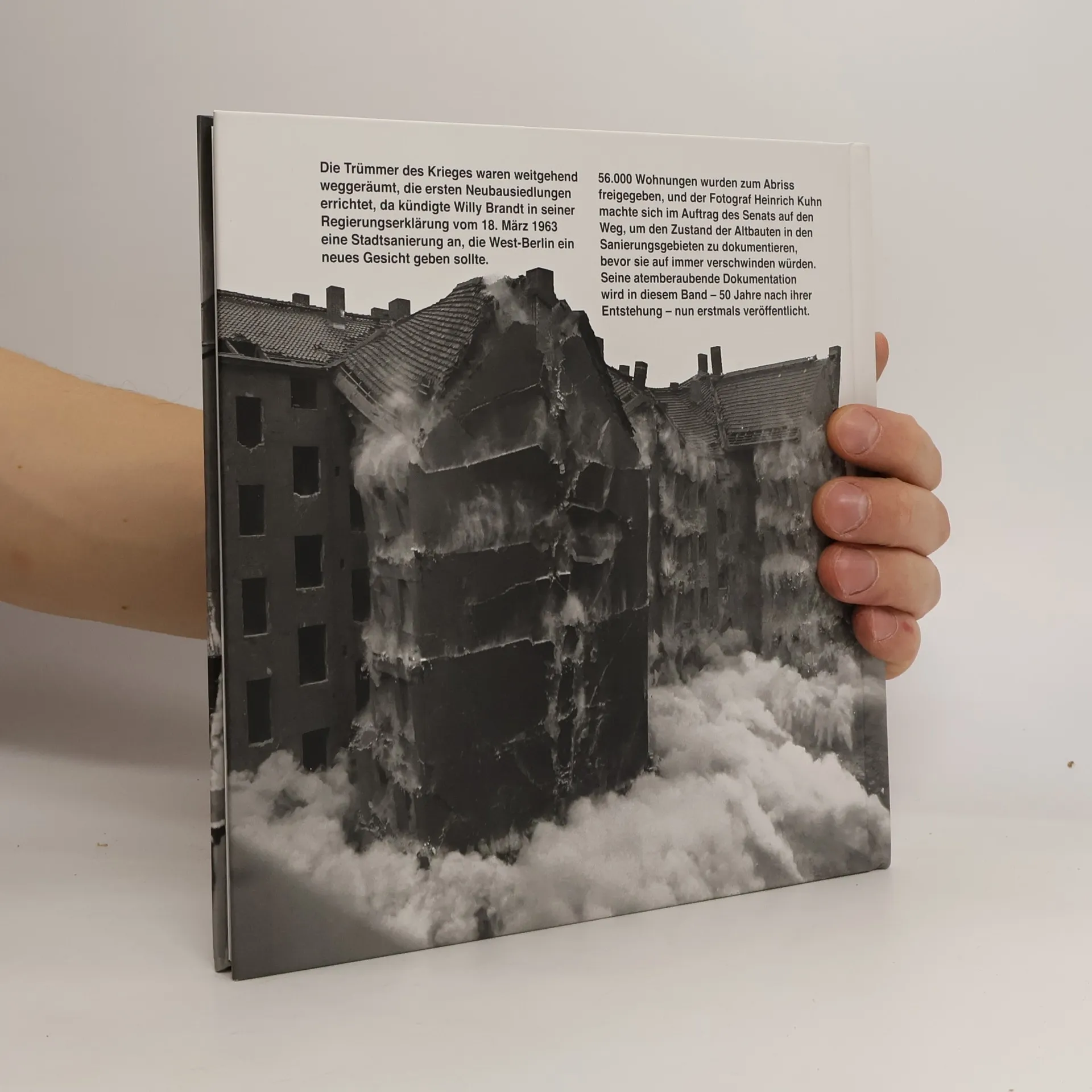 Die Trümmer des Krieges waren weitgehend weggeräumt, die ersten Neubausiedlungen errichtet, da kündigte Willy Brandt in seiner Regierungserklärung vom 18. März 1963 eine Stadtsanierung an, die West-Berlin ein neues Gesicht geben sollte. 56.000 Wohnungen wurden zum Abriss freigegeben, und der Fotograf Heinrich Kuhn machte sich im Auftrag des Senats auf den Weg, um den Zustand der Altbauten in den Sanierungsgebieten zu dokumentieren, bevor sie auf immer verschwinden würden. Seine atemberaubende Dokumentation wird in diesem Band - 50 Jahre nach ihrer Entstehung - nun erstmals veröffentlicht.
