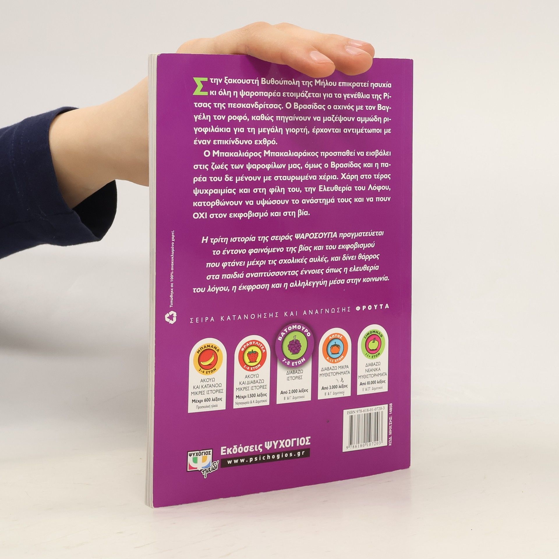 Στην ξακουστή Βυθούπολη της Μύλου επικρατεί ησυχία κι όλη η ψαροπαρέα ετοιμάζεται για τα γενέθλια της Ρίτσας της Πεσκανδρίτσας. Ο Βρασίδας ο αχινός με τον Βαγγέλη τον ροφό, καθώς πηγαίνουν να μαζέψουν αμμώδη ριγοφιλάκια για τη μεγάλη γιορτή, έρχονται αντιμέτωποι με έναν επικίνδυνο εχθρό.Ο Μπακαλιάρος Μπακαλιαράκος προσπαθεί να εισβάλει στις ζωές των ψαροφίλων μας, όμως ο Βρασίδας και η παρέα του δε μένουν με σταυρωμένα χέρια. Χάρη στο τέρας ψυχραιμίας και στη φίλη του, την Ελευθερία του Λόφου, κατορθώνουν να υψώσουν το ανάστημά τους και να πουν ΟΧΙ στον εκφοβισμό και στη βία.Η τρίτη ιστορία της σειράς ΨΑΡΟΣΟΥΠΑ πραγματεύεται το έντονο φαινόμενο της βίας και του εκφοβισμού που φτάνει μέχρι τις σχολικές αυλές, και δίνει θάρρος στα παιδιά αναπτύσσοντας έννοιες όπως η ελευθερία του λόγου, η έκφραση και η αλληλεγγύη μέσα στην κοινωνία.