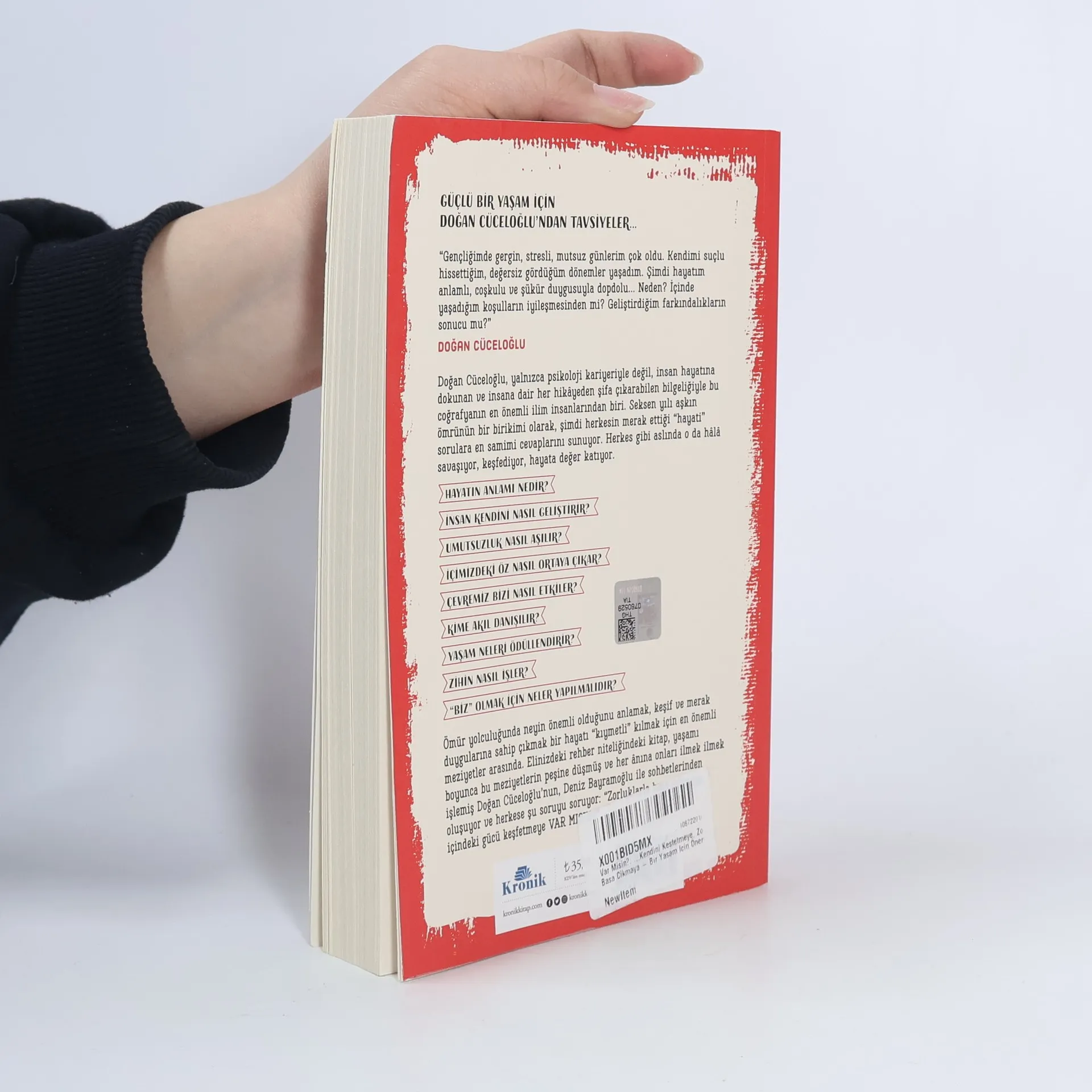 "Gençliğimde gergin, stresli, mutsuz günlerim çok oldu. Kendimi suçlu hissettiğim, değersiz gördüğüm dönemler yaşadım. Şimdi hayatım anlamlı, coşkulu ve şükür duygusuyla dopdolu... Neden? İçinde yaşadığım koşulların iyileşmesinden mi? Geliştirdiğim farkındalıkların sonucu mu? ... Doğan Cüceloğlu, yalnızca psikoloji kariyeriyle değil, insan hayatına dokunan ve insana dair her hikayeden şifa çıkarabilen bilgeliğiyle bu coğrafyanın en önemli ilim insanlarından biri. Seksen yılı aşkın ömrünün bir birikimi olarak, şimdi herkesin merak ettiği "hayati" sorulara en samimi cevaplarını sunuyor. Herkes gibi aslında o da hala savaşıyor, keşfediyor, hayata değer katıyor."--Back cover.