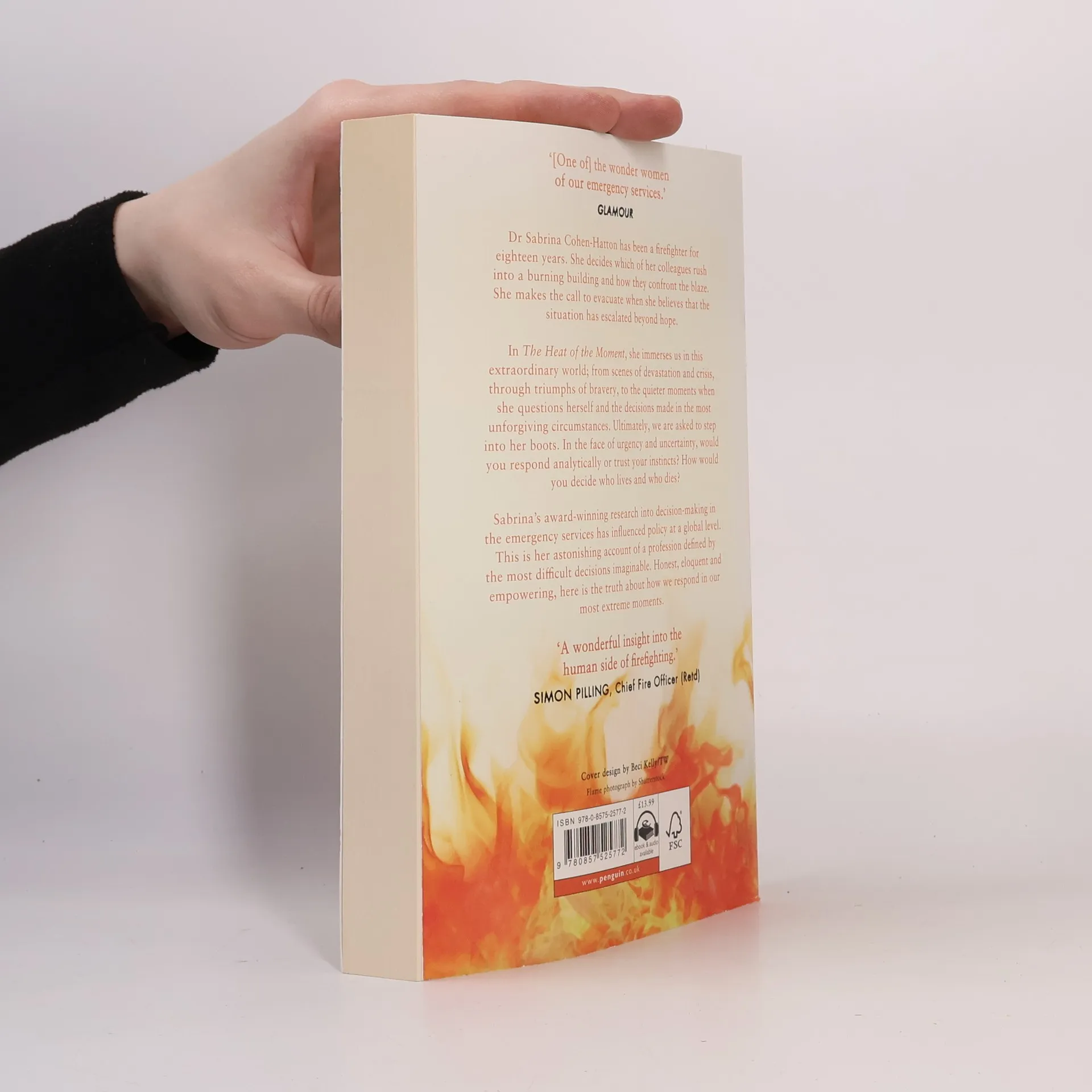 Dr Sabrina Cohen-Hatton has been a firefighter for eighteen years. She decides which of her colleagues rush into a burning building and how they confront the blaze. She makes the call to evacuate when she feels the options have been exhausted, even if it means leaving the injured behind. She has managed emergencies that have shocked us and moved us, and made decisions that seem impossible. Her book takes us to the heart of firefighting, and reveals the skills and qualities that are essential to surviving - and even thriving - in such a fast-paced and emotionally-charged environment. It immerses us in this extraordinary world; from scenes of devastation and crisis, through triumphs of bravery, to the quieter moments when these assumed heroes question themselves, their choices, and decisions made in the most unforgiving circumstances. Ultimately, we are asked to step into their boots. In the face of urgency and uncertainty, would you respond in an analytical manner or trust your instincts? How would you decide who lives and who dies? Sabrina's award-winning research into decision-making in the emergency services has transformed policy at a global level. This is her astonishing account of a profession defined by the most difficult decisions imaginable and by overwhelmingly challenging situations. Honest, eloquent and empowering, here is the truth about how we respond in our most extreme moments.
