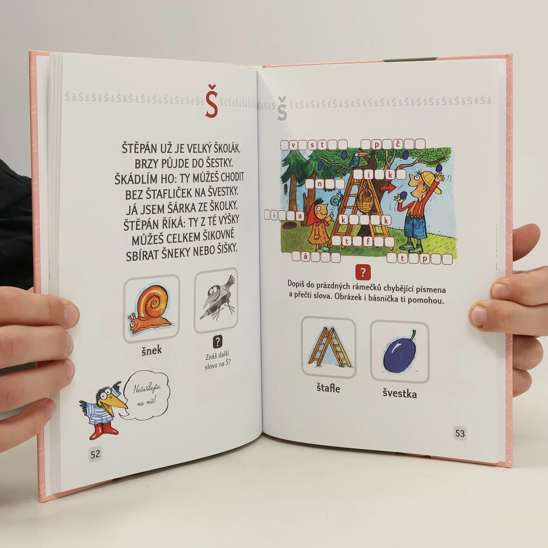 * Písmena, slova, básničky, úkoly, obrázky, slovníček. * Krákorka představí dětem všech 34 písmen české abecedy. * Každému písmenu je věnováná celá dvoustrana: veselá básnička, úkol a slova k danému písmenu. * Na závěr si děti mohou vyzkoušet psaní všech písmen a všechna nová slova si zopakovat za pomoci velkého obrázkového slovníku.
