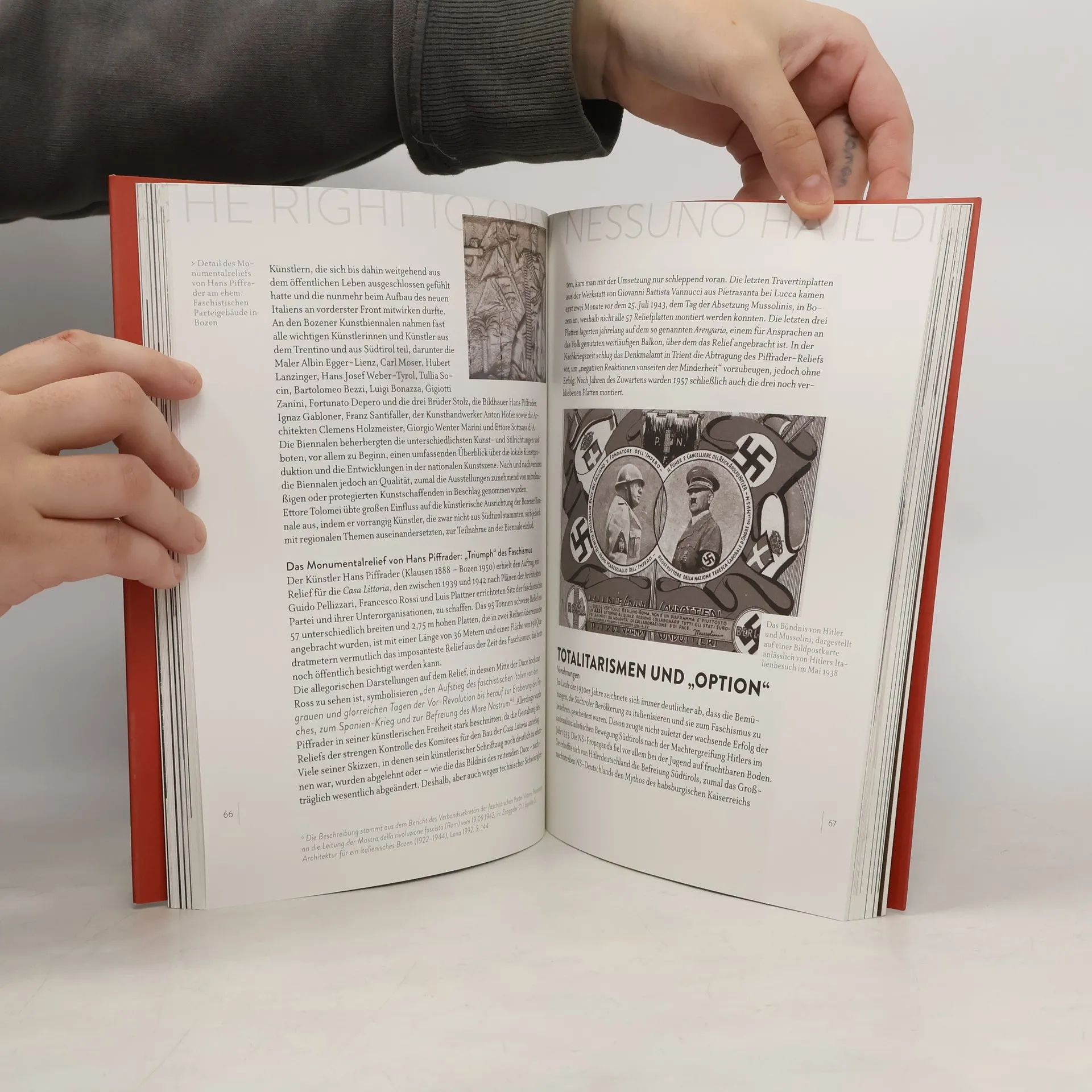 Das Denkmal zeugt von einem düsteren Kapitel der europäischen Zeitgeschichte. In den Jahren 1926–1928 wird es nach einem Entwurf des bedeutenden italienischen Architekten Marcello Piacentini errichtet. Benito Mussolini hat es dem „italienischen Sieg“ gewidmet. Das Buch beschreibt die tiefgreifenden urbanistischen Umgestaltungen in den 1920er-Jahren: Bozen soll durch neue Stadtviertel und eine massive Industrialisierungspolitik zu einer rein „italienischen Stadt“ umgestaltet werden. Nach 1943 regierten die Nationalsozialisten in der sog. „Operationszone Alpenvorland“ die Stadt.