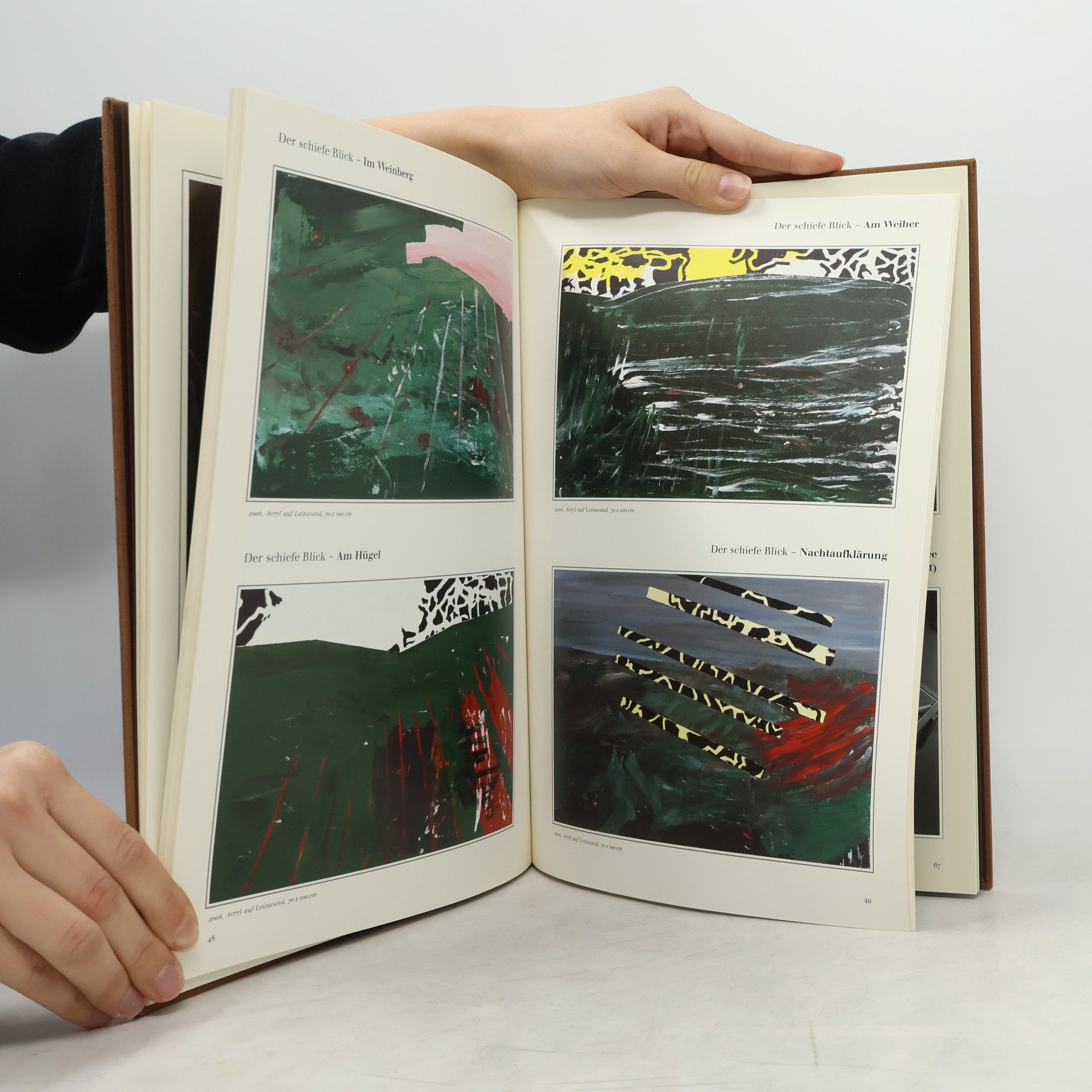 Das nervöse Lachen überkommt einen, wenn man die Zeitung aufschlägt und die großen geopolitischen Diskussionen betrachtet. Welche Krise soll es sein? Syrien, Irak, Afghanistan, Nordkorea, Somalia … Die Angst, dass uns der Himmel auf den Kopf fällt, wächst. Die Welt der neuen Friedensordnungen schwankt von einer Schlagseite zur nächsten; Horst Münch beobachtet dies mit einem „schiefen Blick“. Die großen und kleinen Leinwände verdecken den Blick auf Probleme und Landkarten. Wo sie etwas erklären könnten, stellt sich die Frage: sollten sie das überhaupt? Ist hier nicht Berlin? Doch das muss China sein! Russland ist klar erkennbar, aber wo beginnt Europa? Die Gespräche vor den Bildern gleichen sich: Alles beginnt und endet dort, womit es verbunden ist. Die Grenzziehung der USA an ihren Grenzen wirkt so willkürlich wie die des Irak; ist das die vielbeschworene Nähe? Die Kunstgeschichte hat die Welt immer dargestellt, sei es auf den Karten der Brüder Mercator oder in der abstrakten Malerei. Kämpfe zwischen Küsten und Flächen, die stumpf oder grell sind, spiegeln die Unsicherheit wider. Und Horst Münch? Wenn er uns etwas erklären könnte, dann in seinem Text, wo er sagt: „Die Natur ist verschwenderisch ohne Maß, gleichgültig ohne Maß, ohne Absichten und Rücksichten, ohne Erbarmen und Gerechtigkeit, fruchtbar und öde und ungewiss zugleich; es ist die Indifferenz als Macht.“